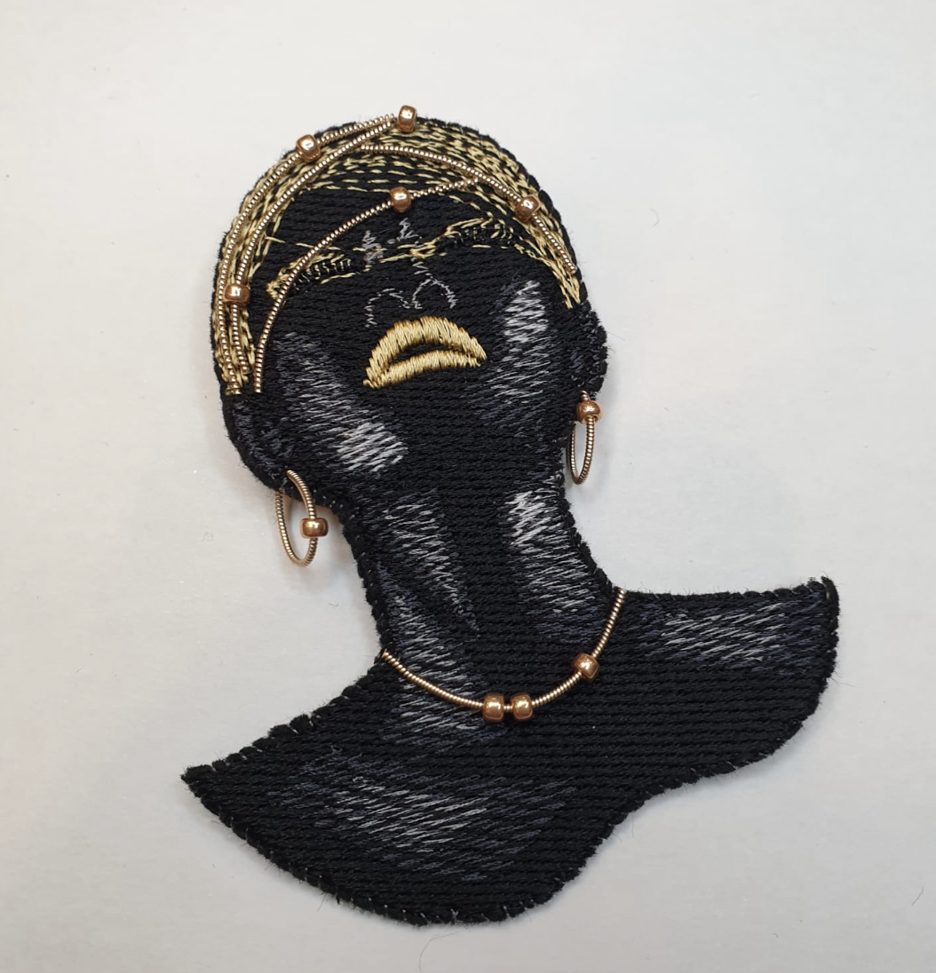 Африканка дизайн машинной вышивки для создания броши, брелока, подвески.