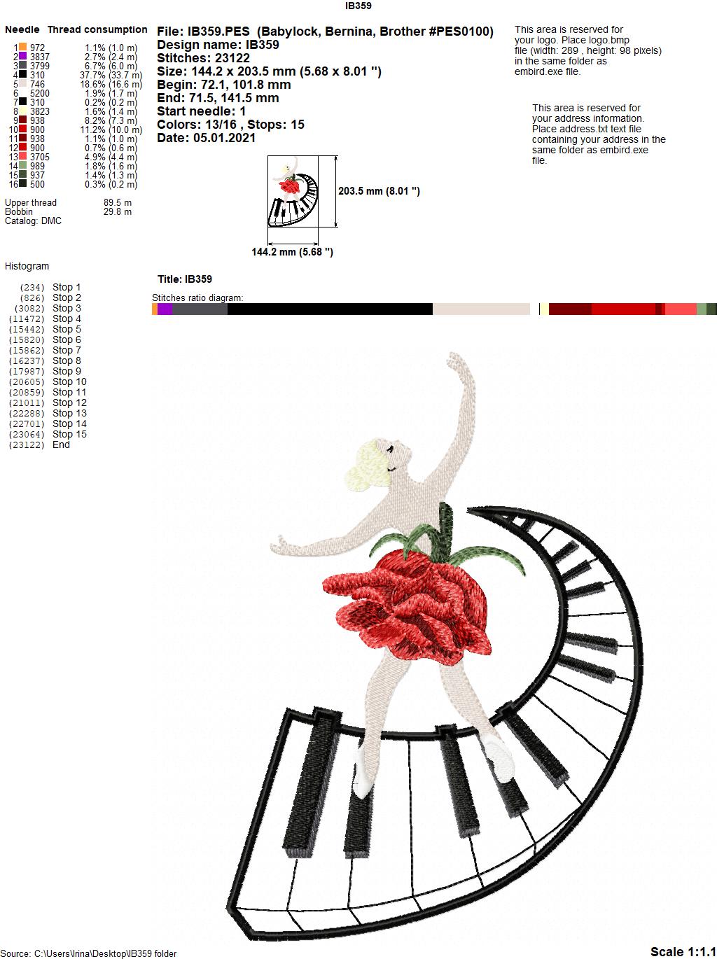 Размер дизайна IB359: 144,2 Х 203,5 мм (5,68 Х 8,01 дюйма)