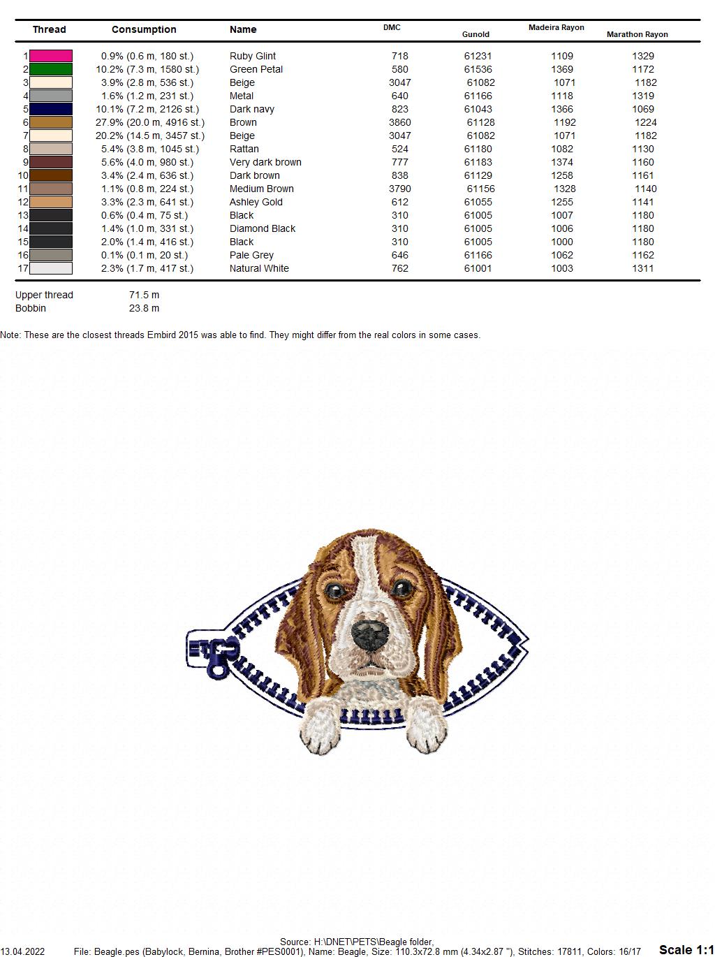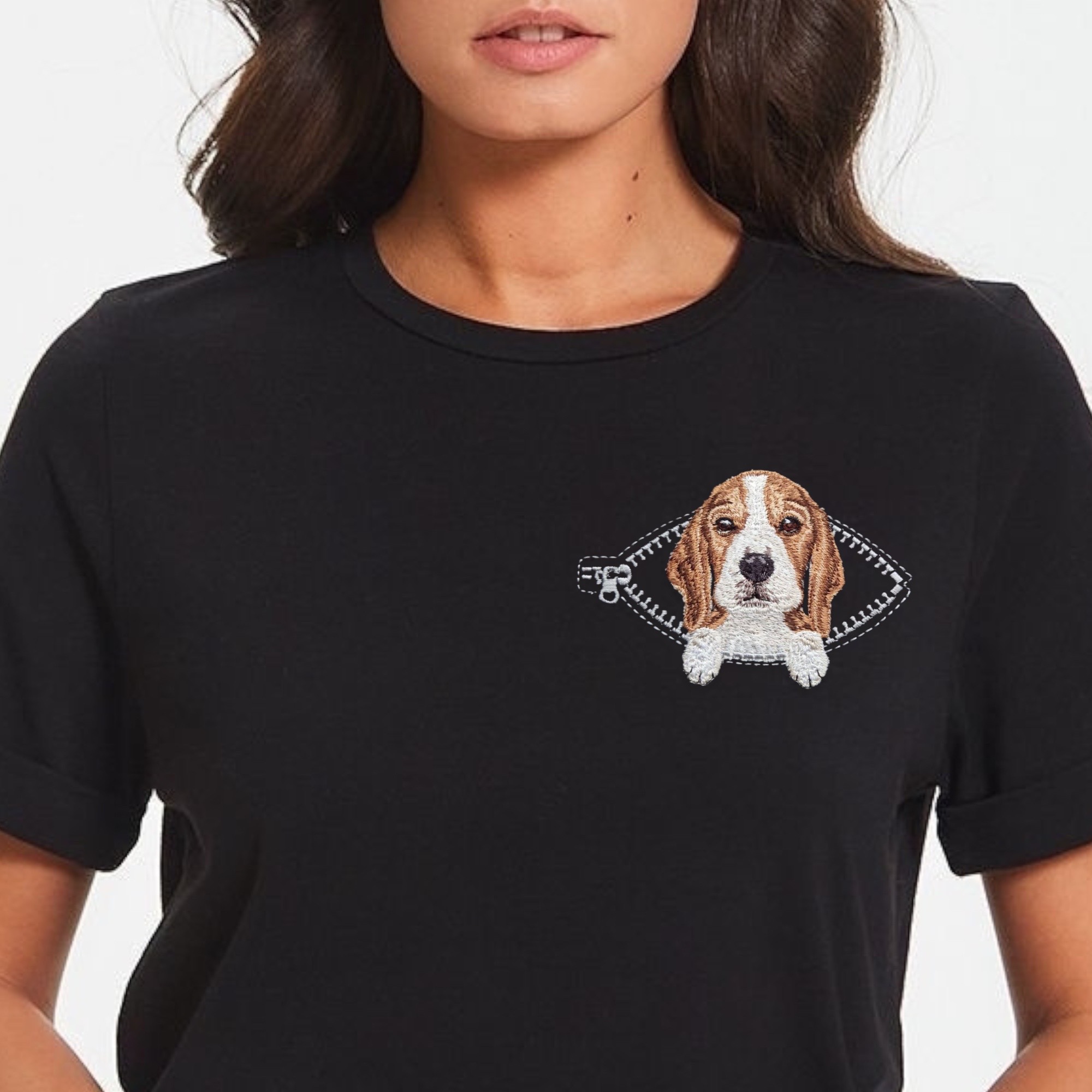 Бигль в кармашке с молнией миниатюрный реалистичный дизайн машинной вышивки