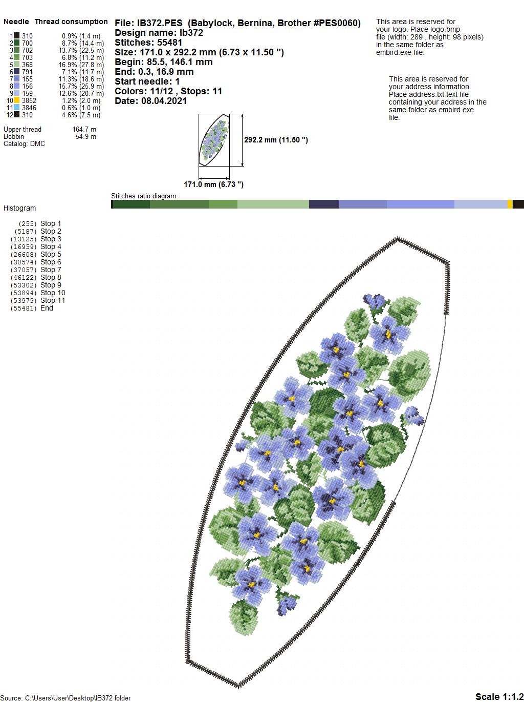 Design size IB372: 171,0 Х 292,2 mm (6,73 Х 11,50 inches )