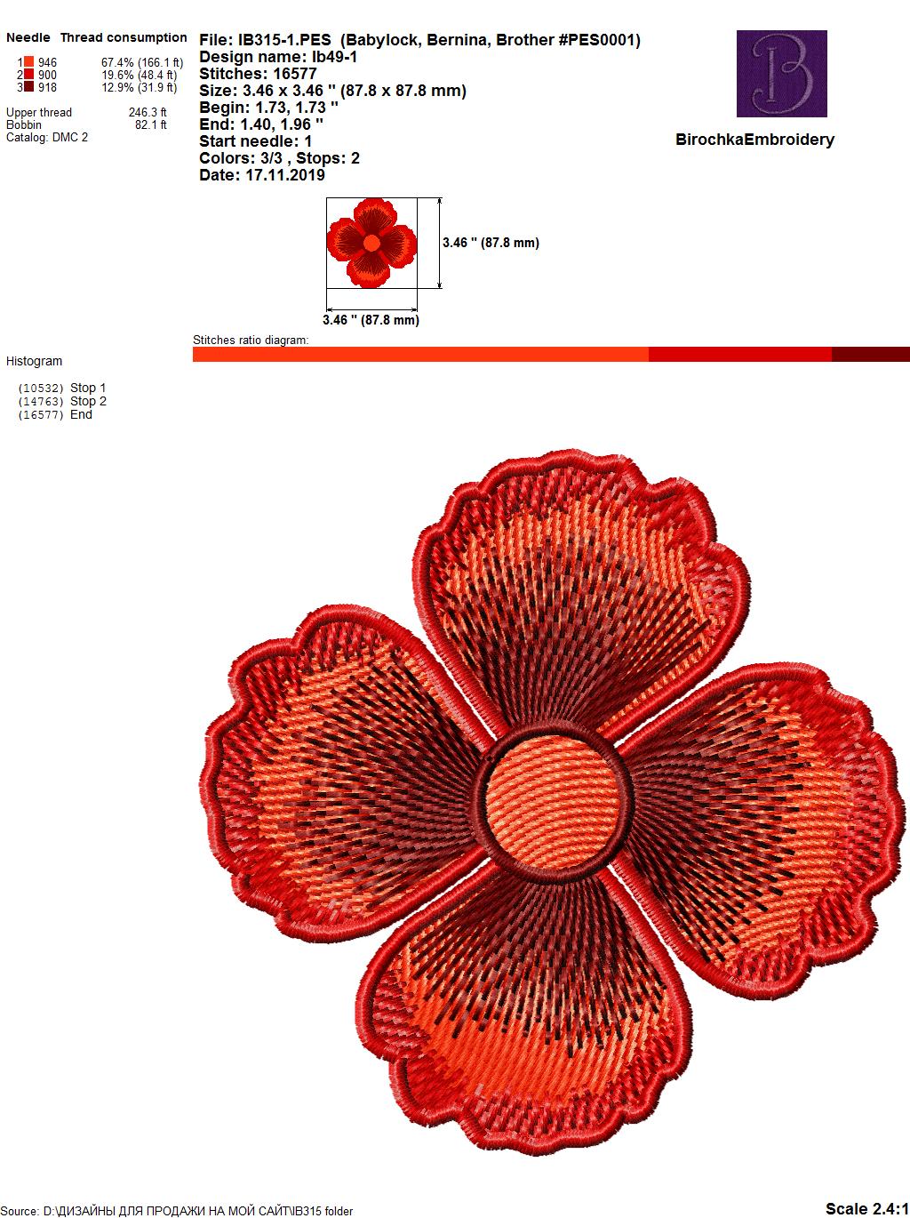 Размер дизайна IB315-3: 72,8 Х 73,2 мм (2,87 Х 2,88 дюйма)