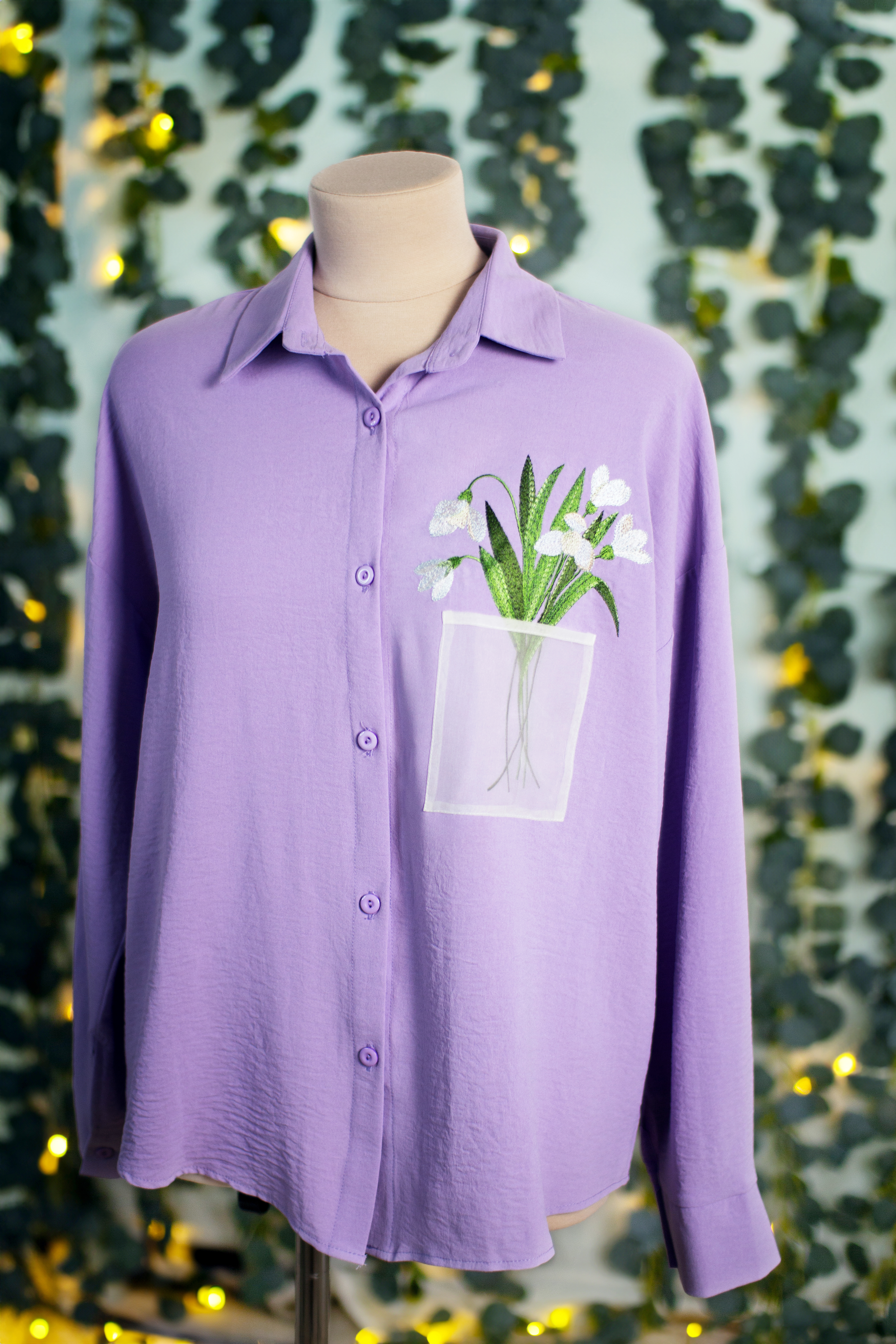 Букет подснежников дизайн машинной вышивки в технике художественной глади