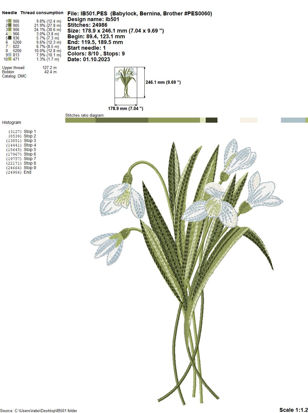 Размер дизайна Подснежники 1: 152,7Х210,1мм (6.01Х8.27 дюймов)