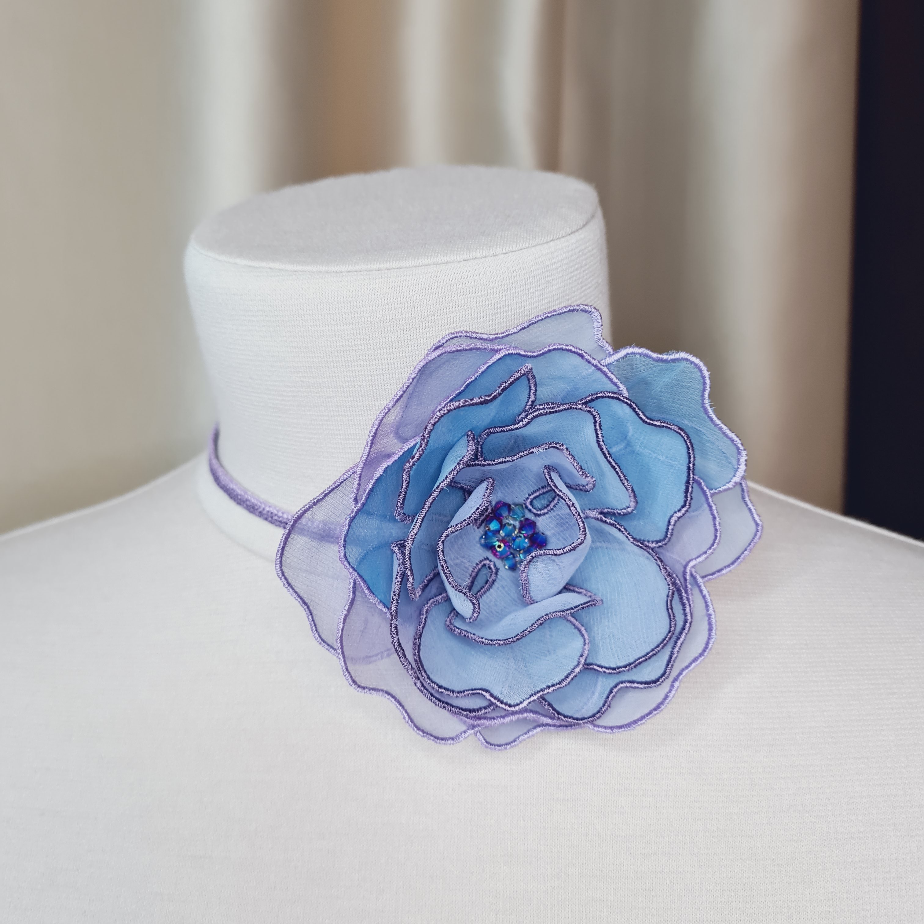 Чокер с нежным цветком из органзы, дизайн машинной вышивки полностью в пяльцах