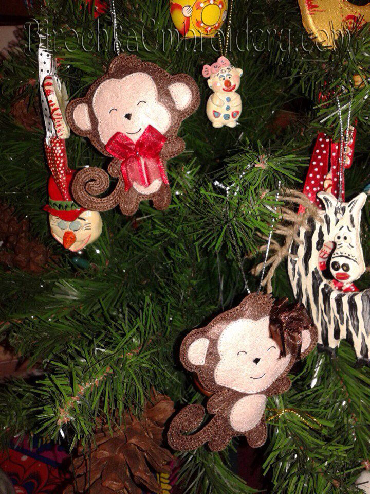 Christmas Tree Toy Monkey Machine Embroidery Design