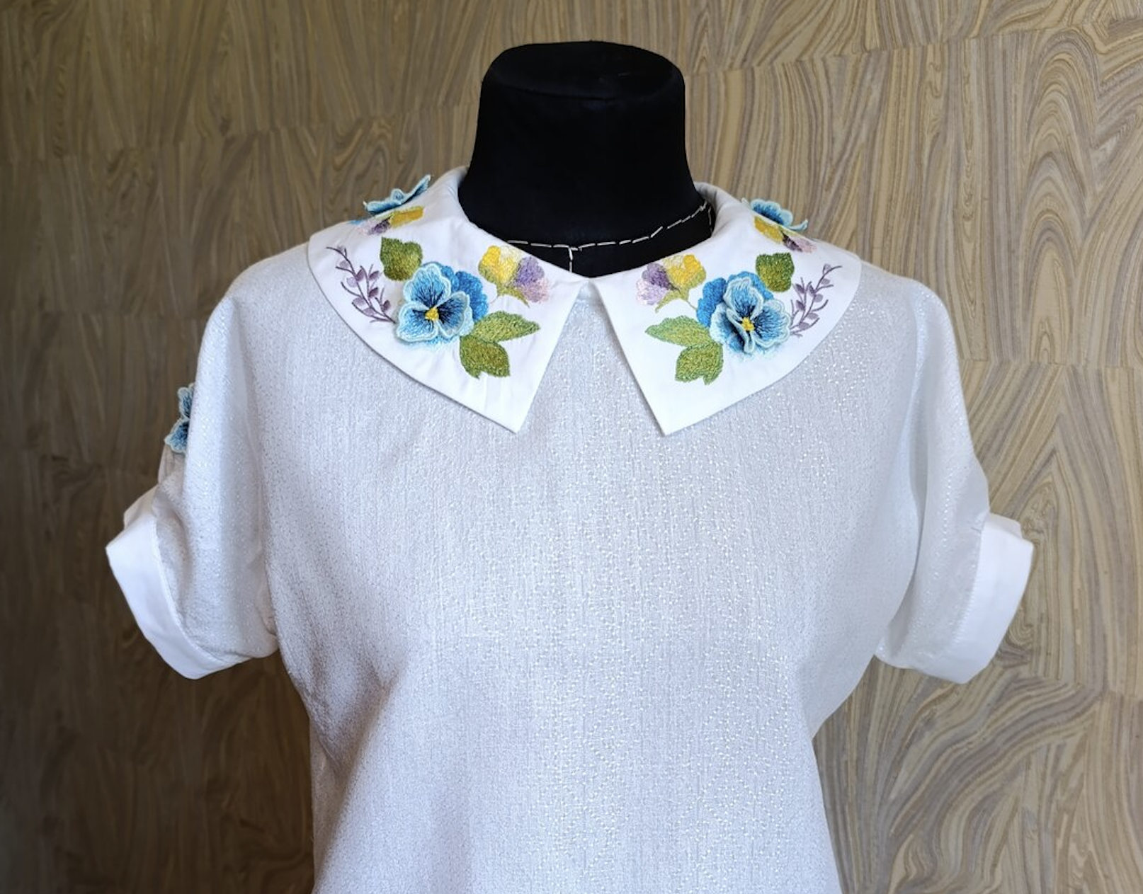 The collar is embroidered and assembled directly in the hoop, and can be embroidered with or without volumetric elements.