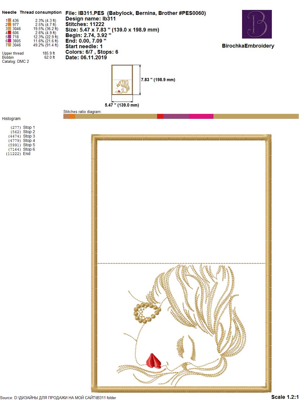 Размер дизайна IB311: 139,0 Х 198,9 мм (5,47 Х 7,83 дюйма)