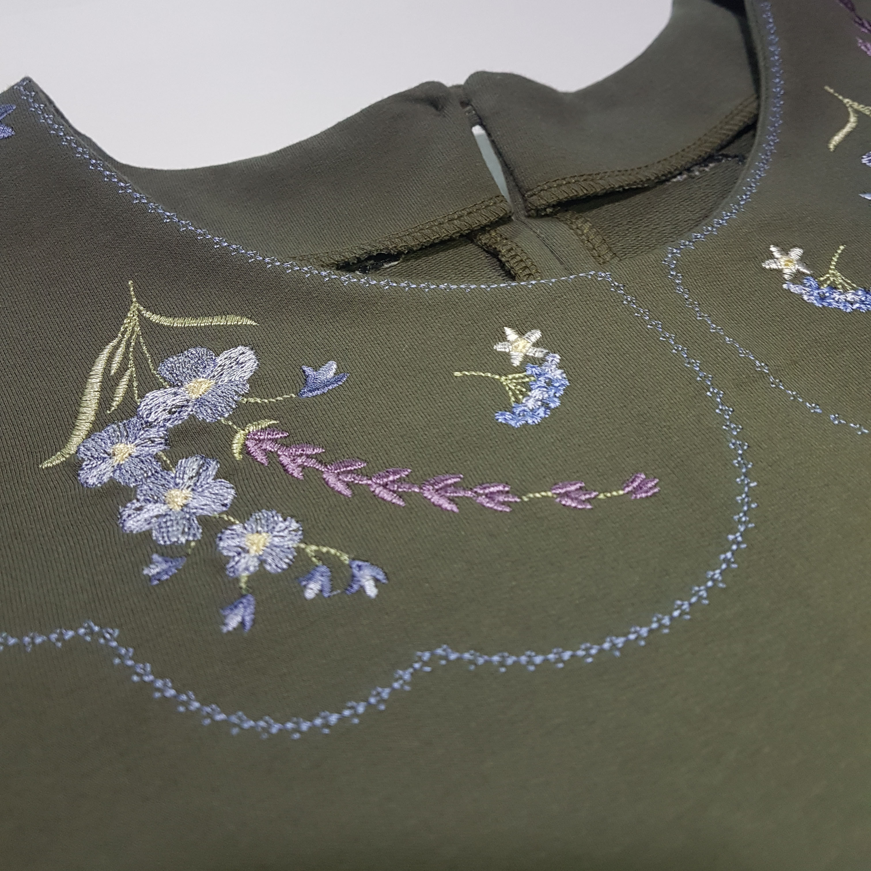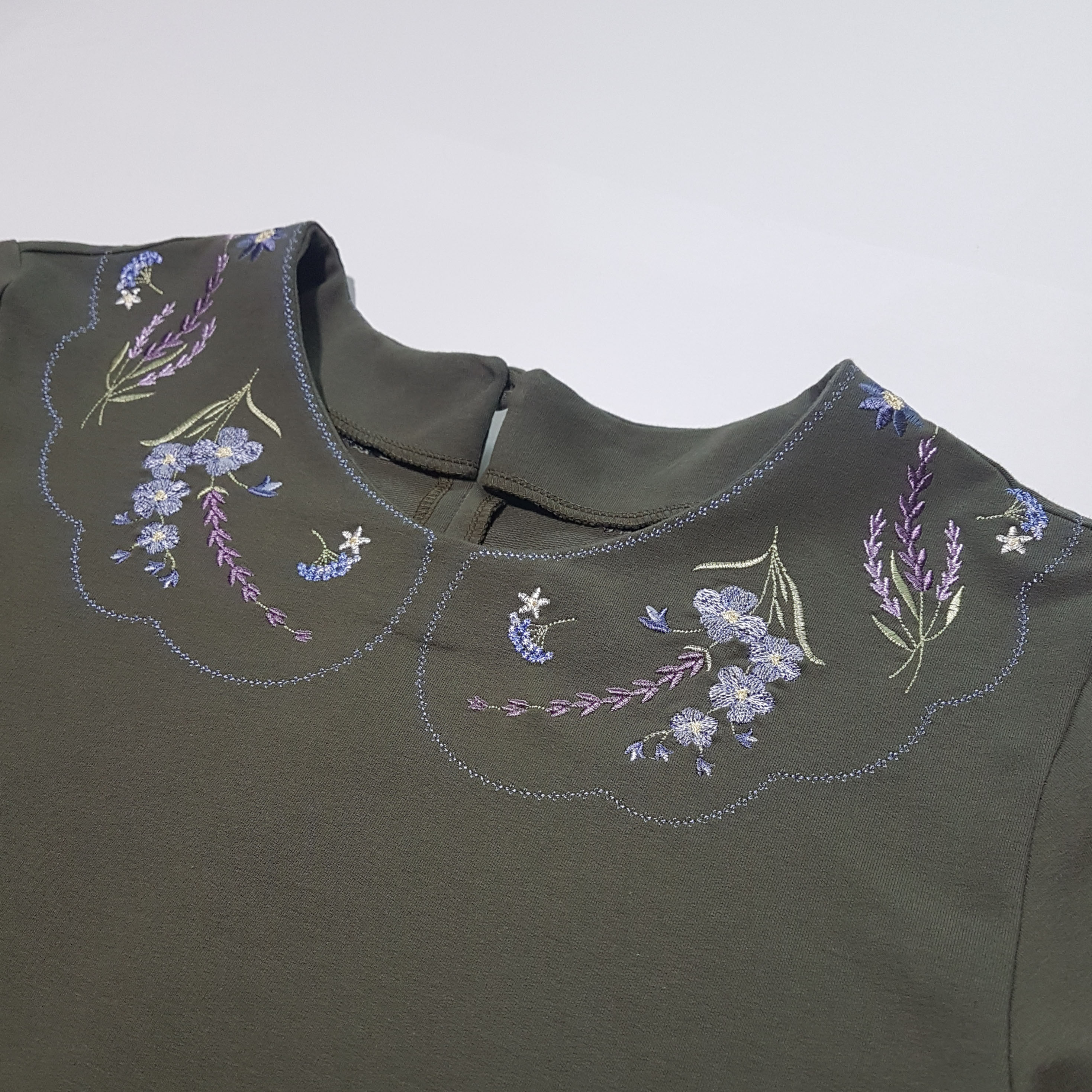 Этот дизайн выглядит просто, он не перенасыщен деталями. Как будто чьи-то руки бережно собрали и выложили цветы и веточки для гербария. Такой воротничок не бросается в глаза, он аккуратный и строгий, при этом он выглядит креативно и отлично дополняет образ!