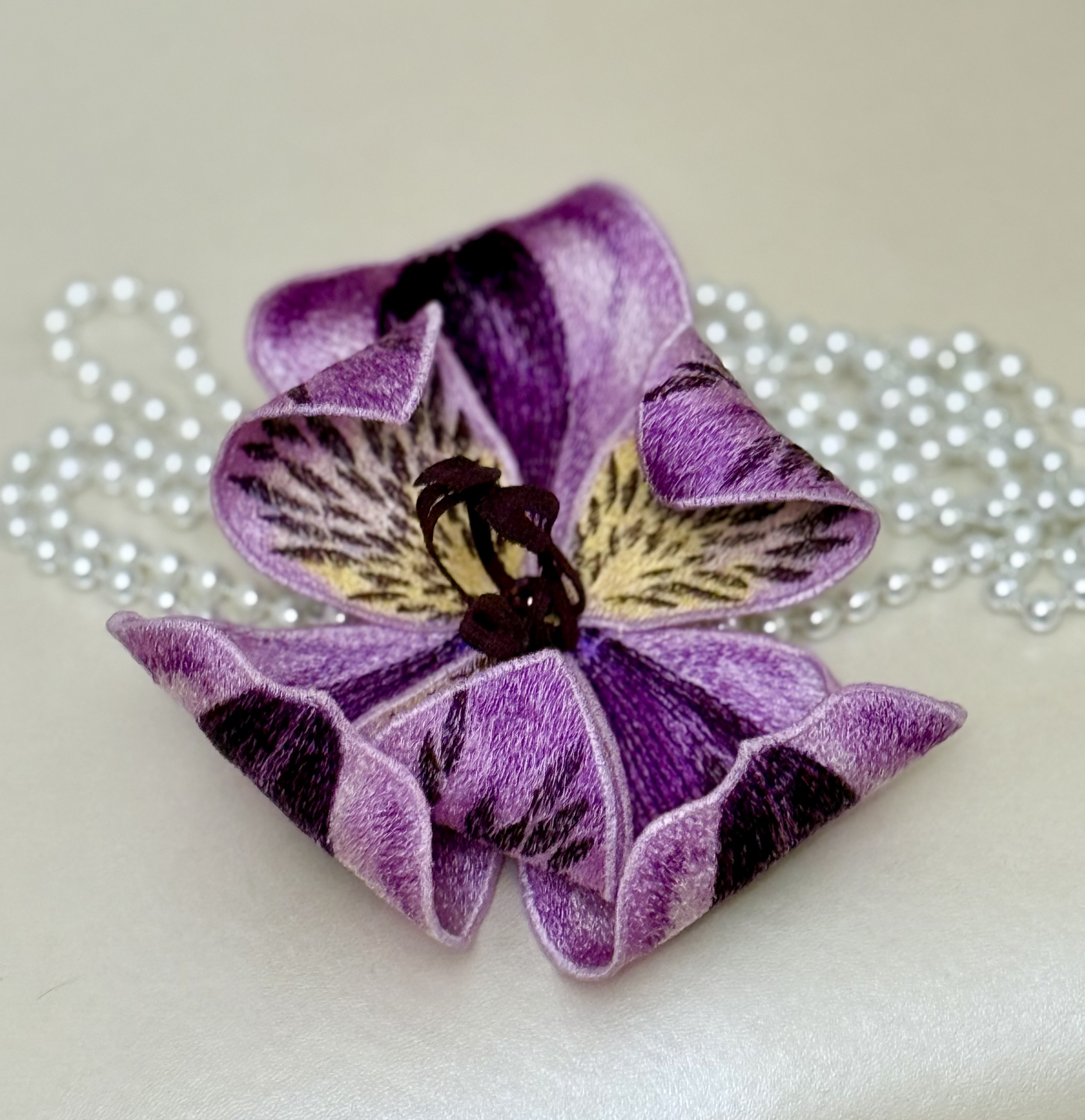 Дизайн машинной вышивки крупная брошь ФСЛ цветок «Альстромерия»