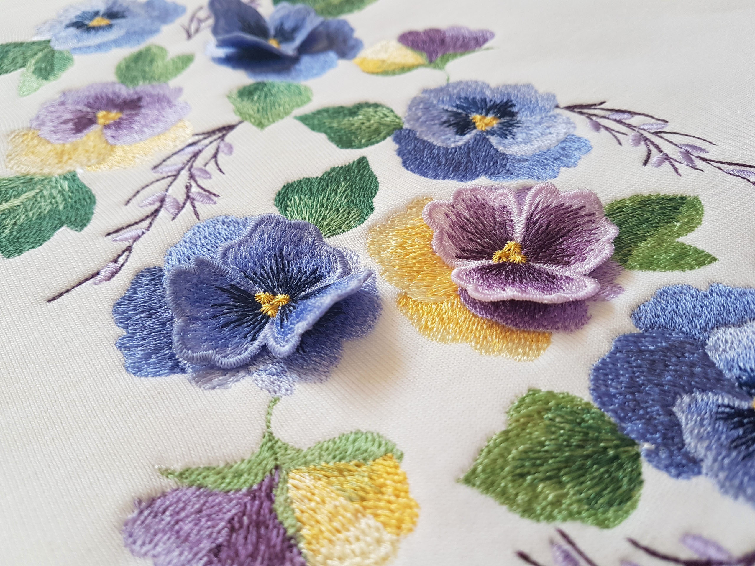Дизайн машинной вышивки Набор Анютины глазки с ЗД элементами