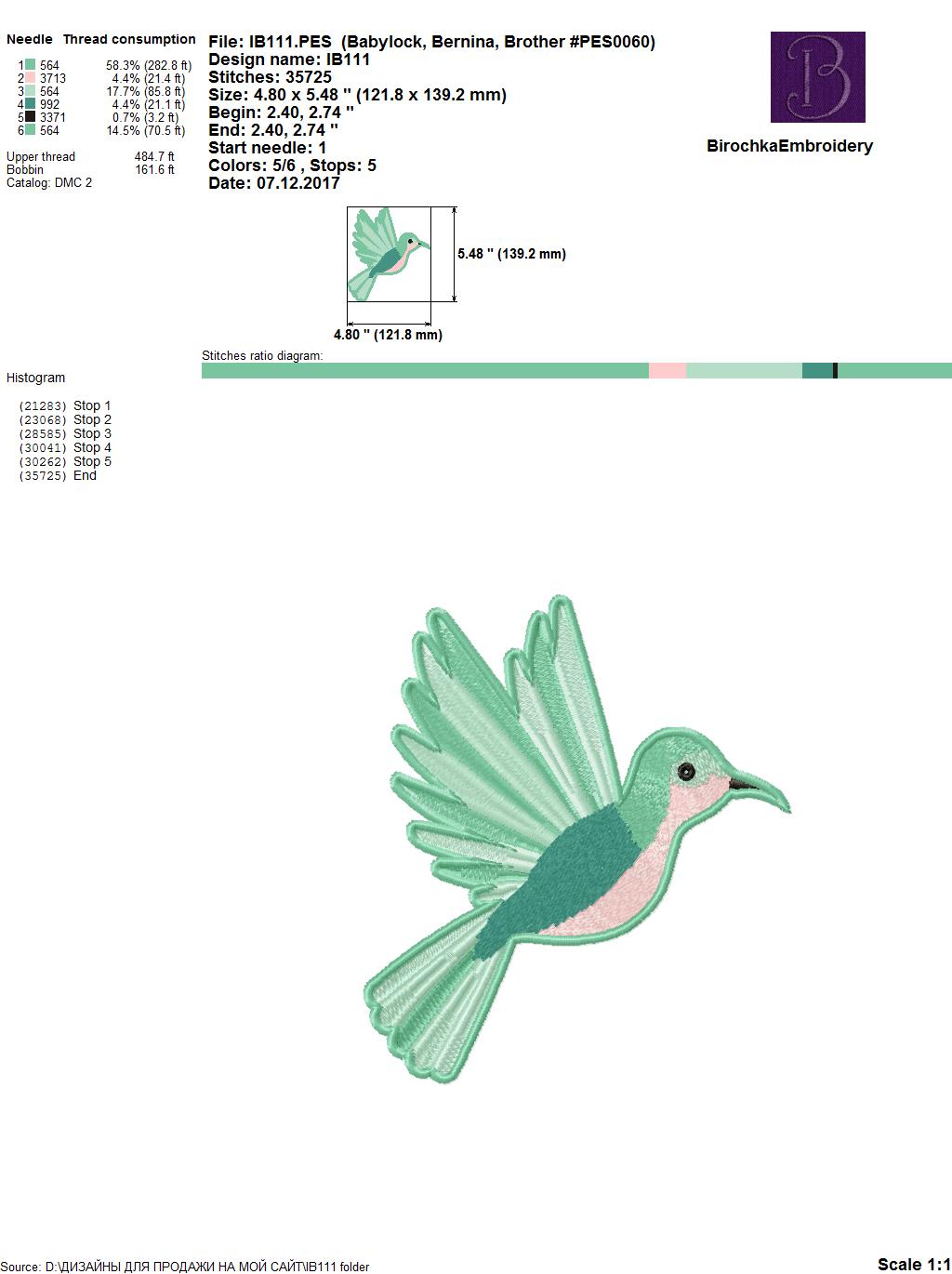 Размер дизайна птица: 139 мм Х 122 мм (5,48 x 4,8 дюйма)