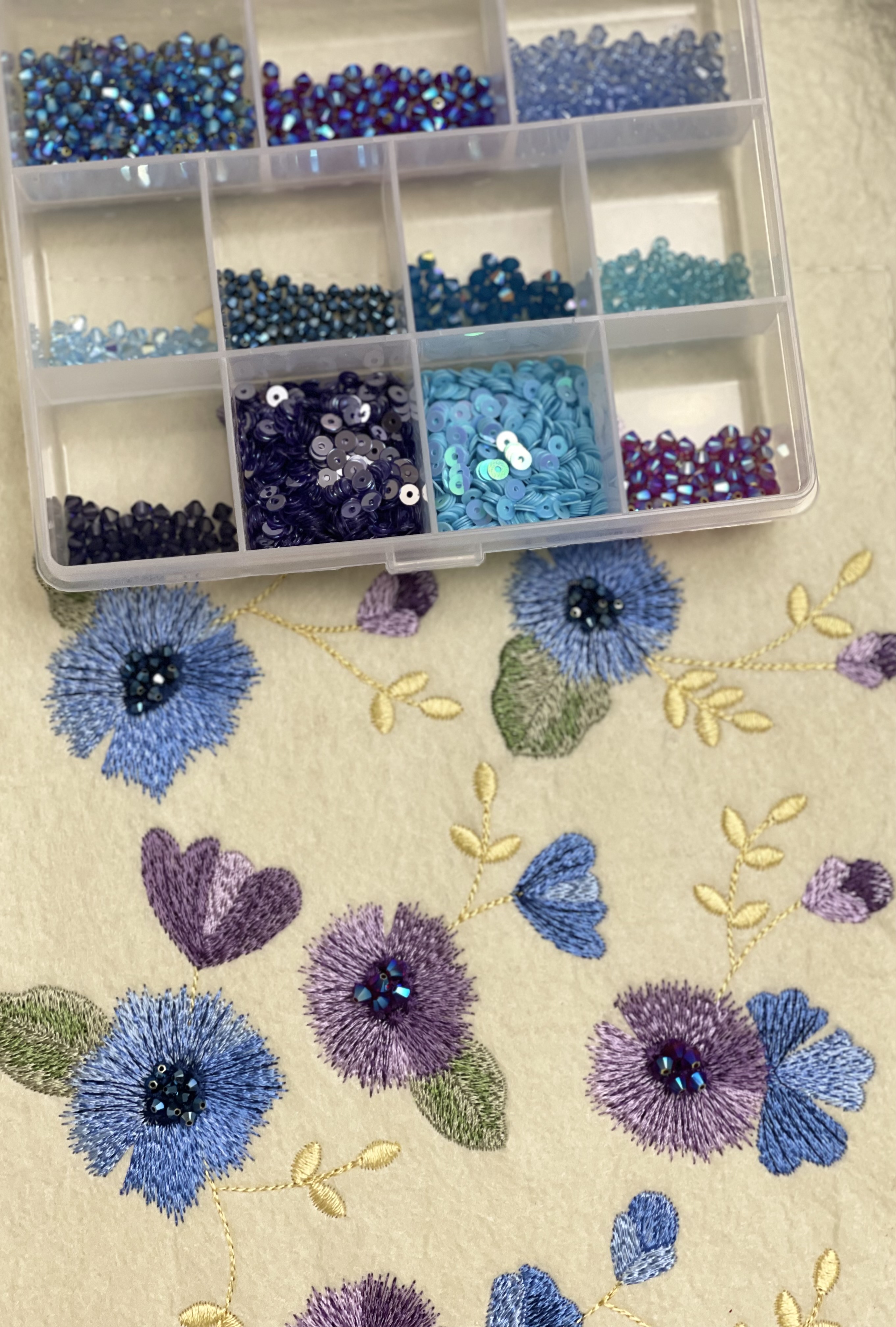You can compose different compositions using the elements of the set according to your taste and preference. If desired, you can decorate the centers of the flowers with beads.