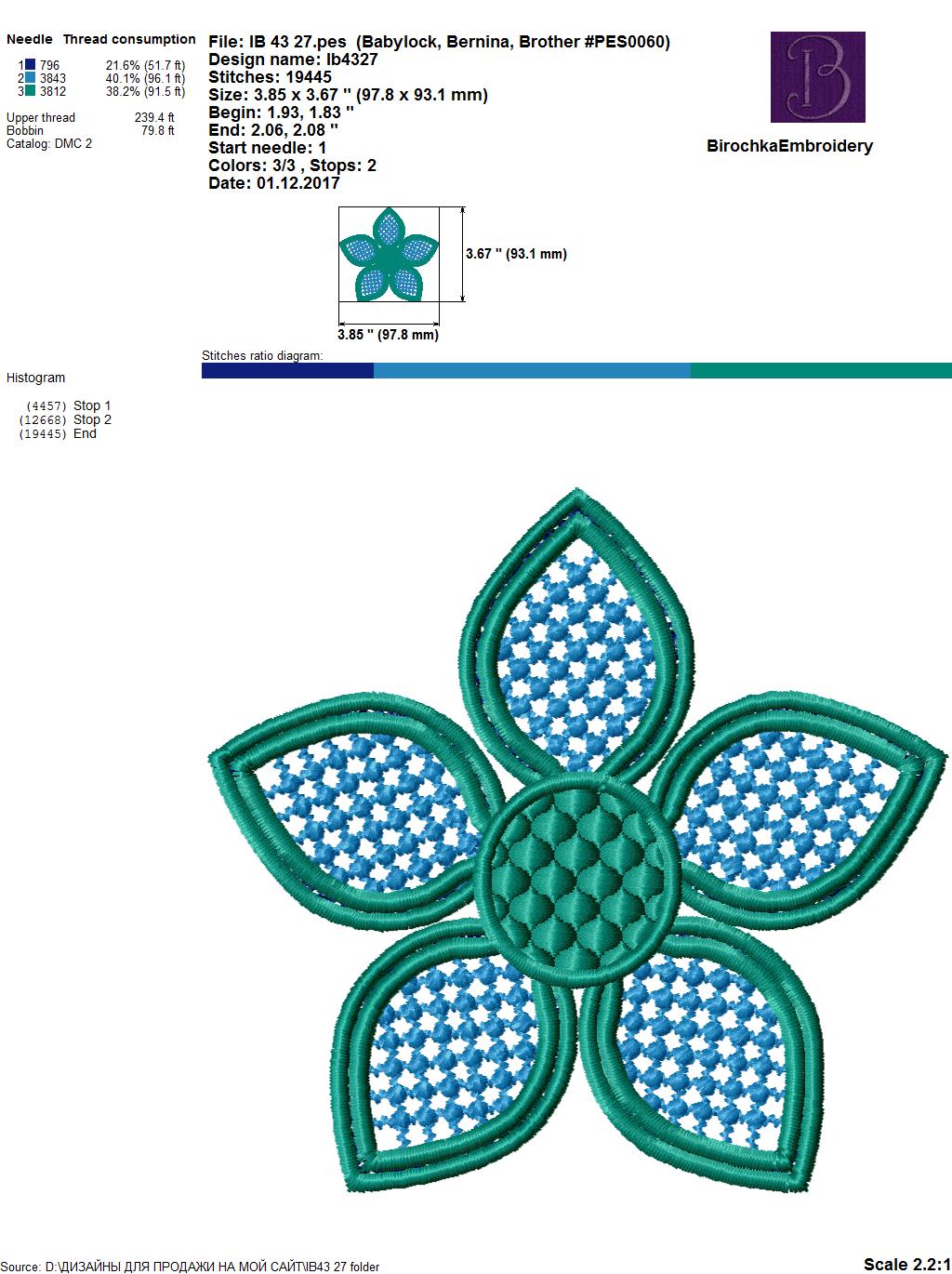 Formats: pes, hus, dst, jef, vp3, exp