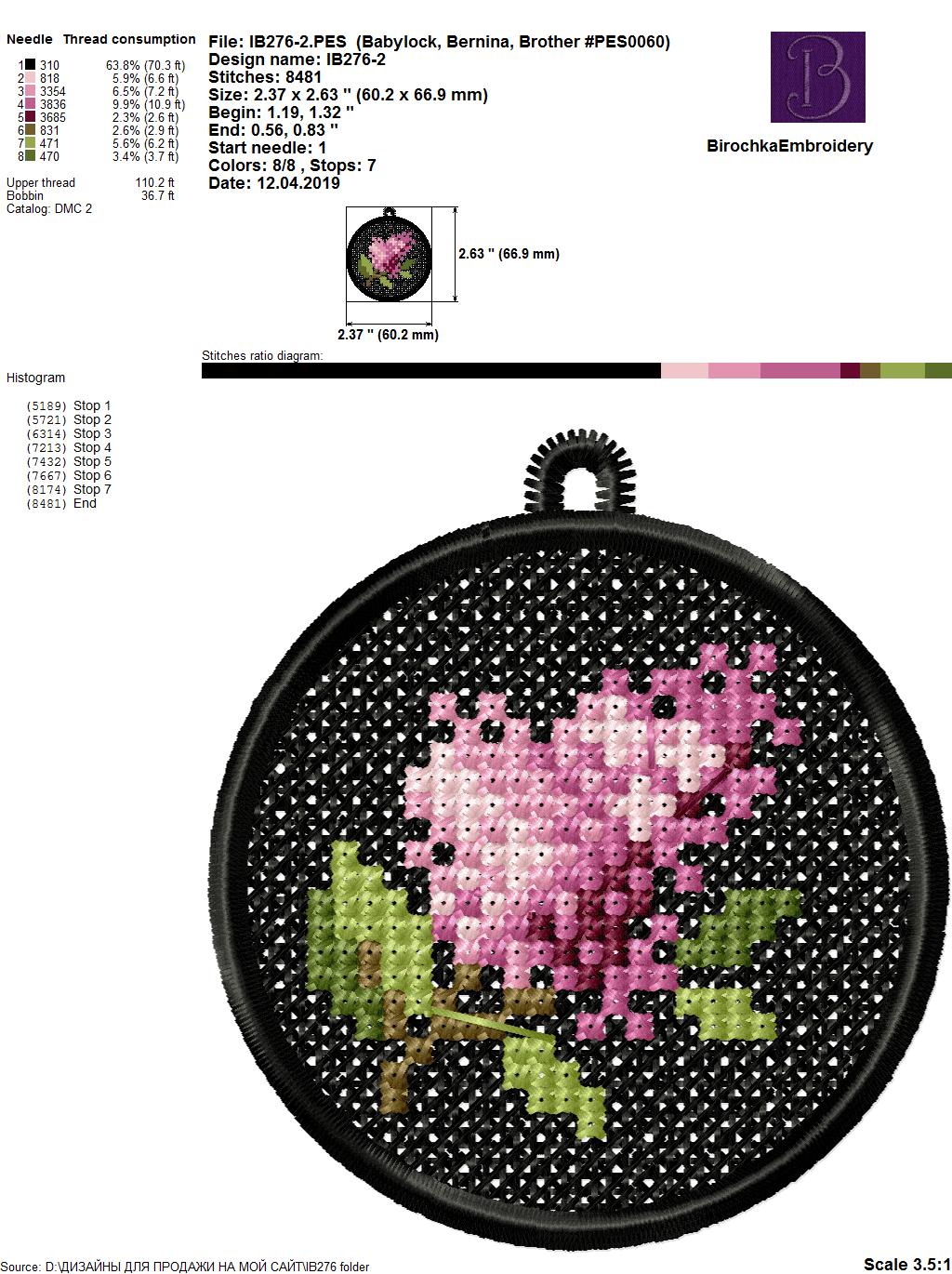 Design size IB276-2: 60,2 Х 66,9 mm (2,37 Х 2,63 inches )