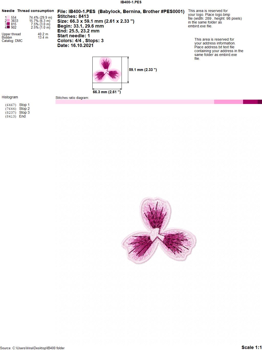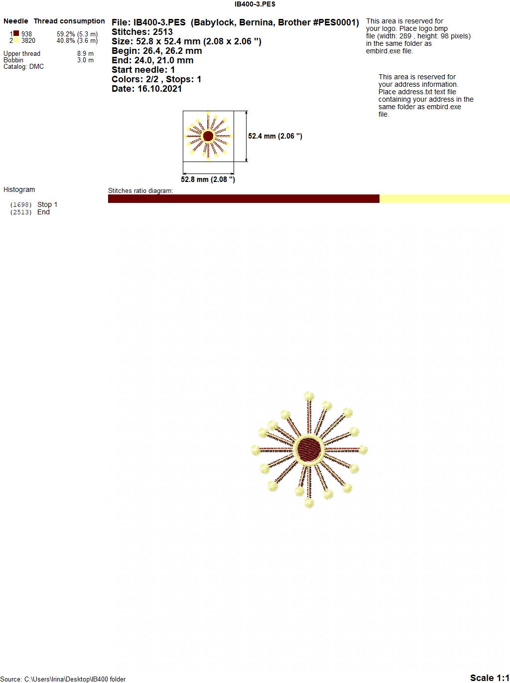 Design size IB400-1: 66,3 Х 59,1 mm (2,61 Х 2,33 inches )