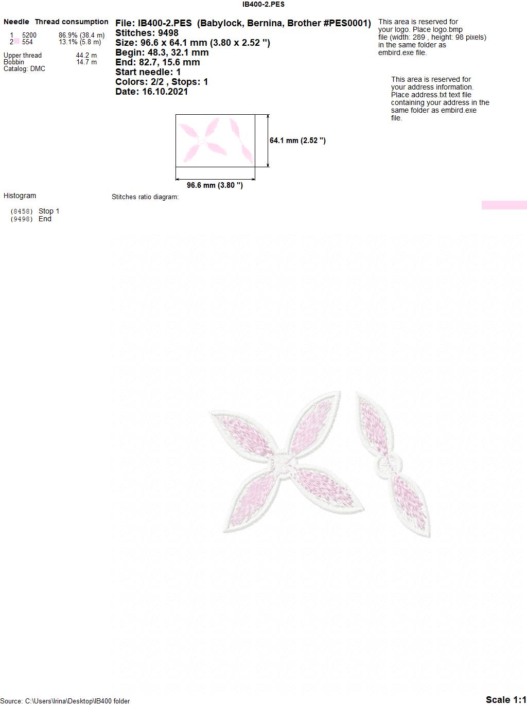 Design size IB400-2: 96,6 Х 64,1 mm (3,80 Х 2,52 inches )