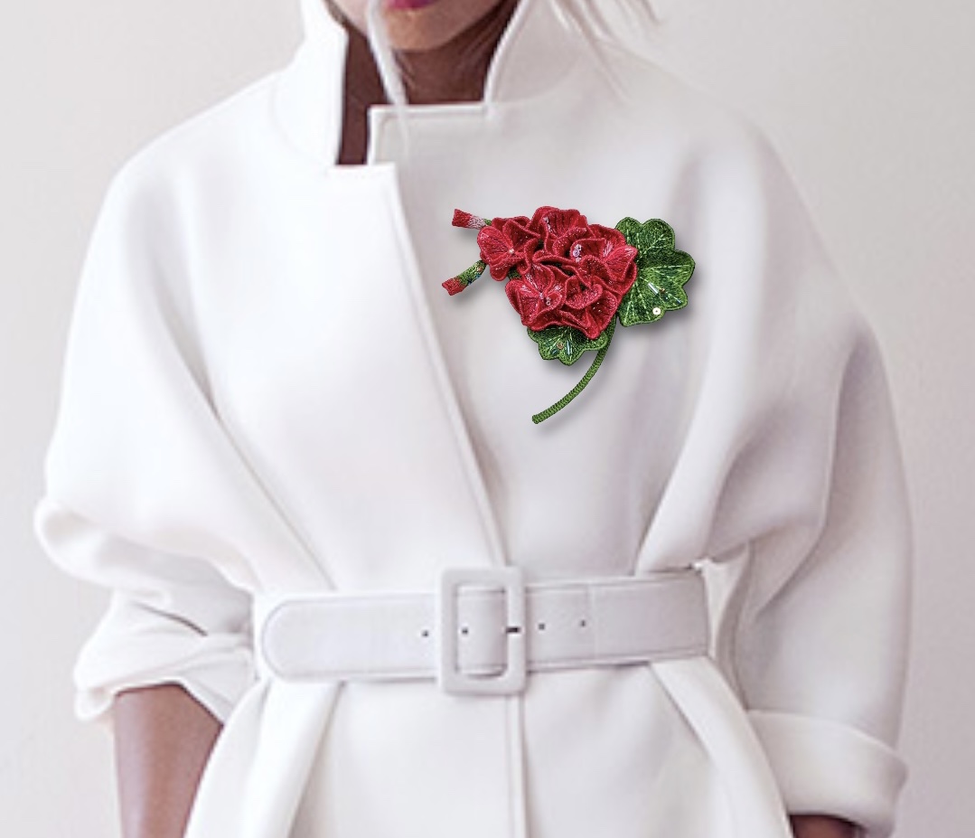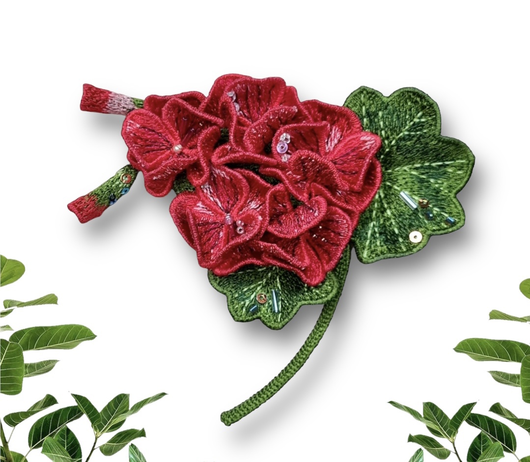 Дизайн машинной вышивки герань FSL для создания брошей и других украшений
