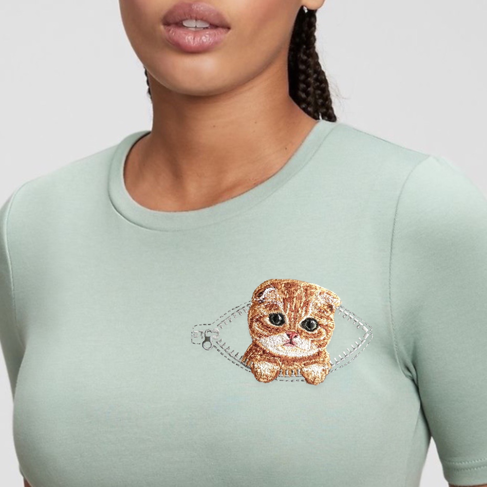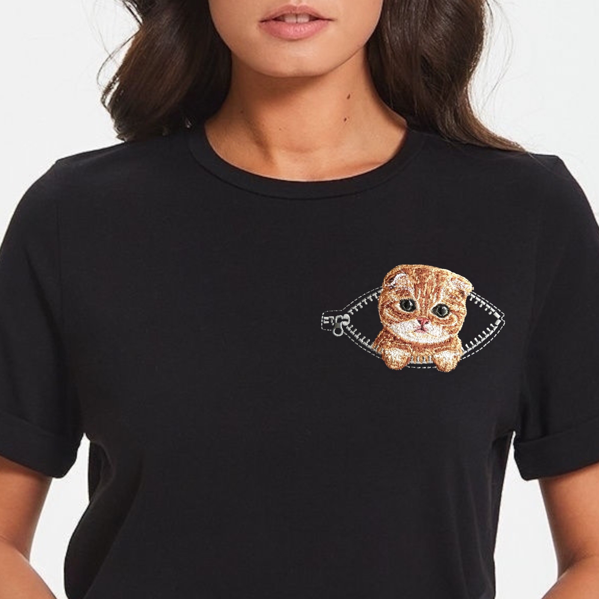 Miniature realistic design “Ginger kitten in a pocket with a zipper”