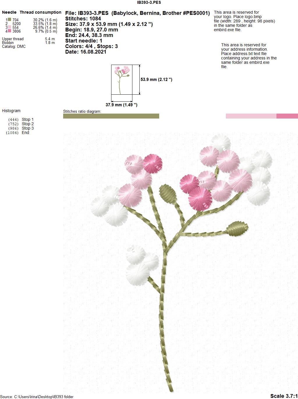 Design size IB393-3: 53,9 Х 37,9 mm (2,12 Х 1,49 inches )