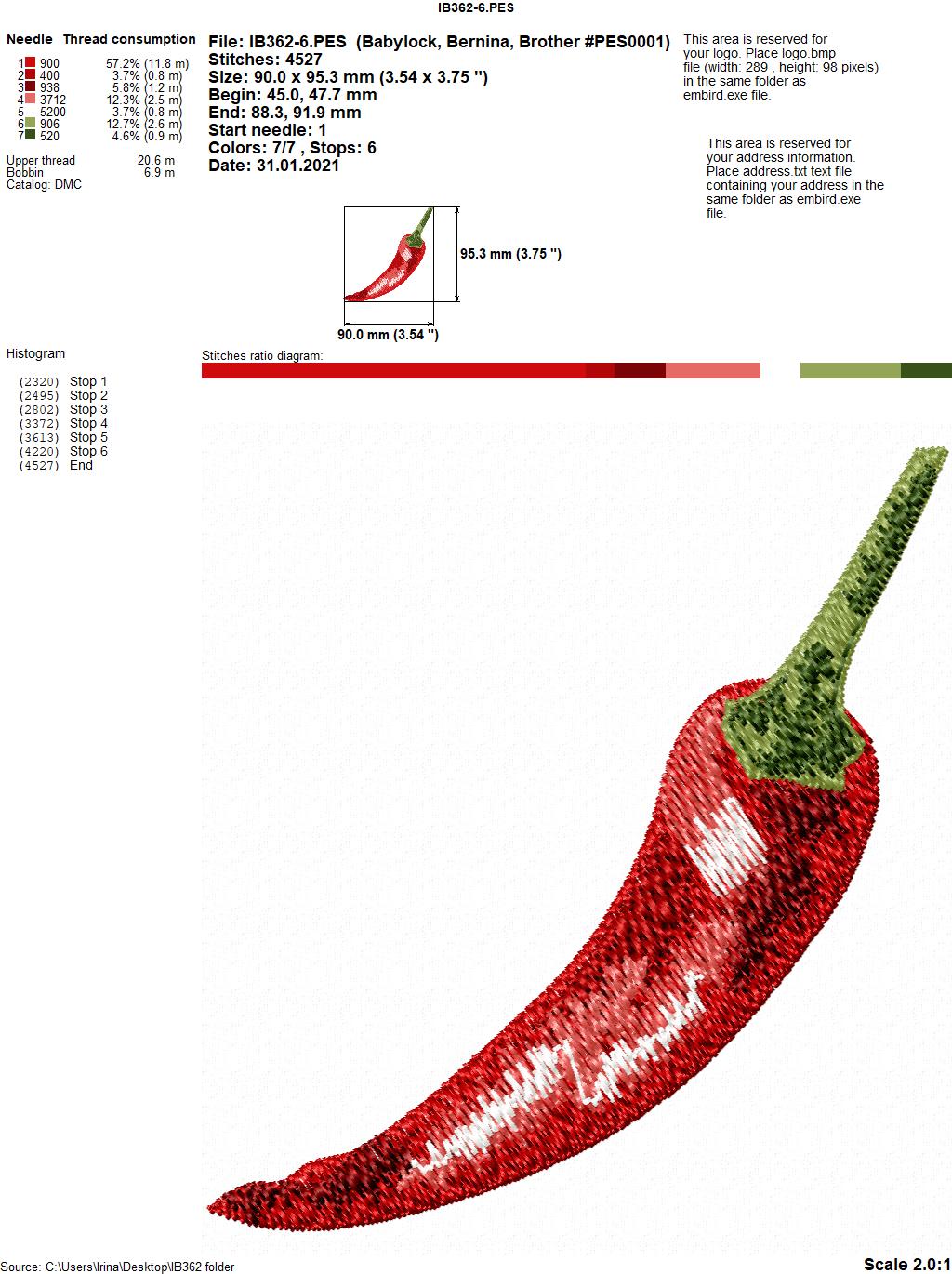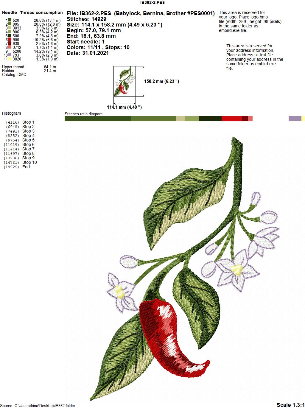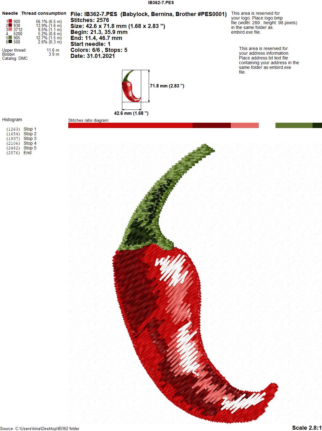 Design size IB362-7(pepper): 42,6 Х 71,8 mm (1,68 Х 2,83 inches )