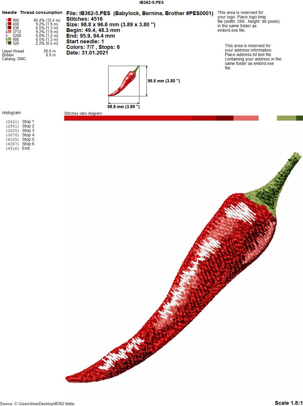 Design size IB362-5(pepper): 98,8 Х 96,6 mm (3,89 Х 3,80 inches )