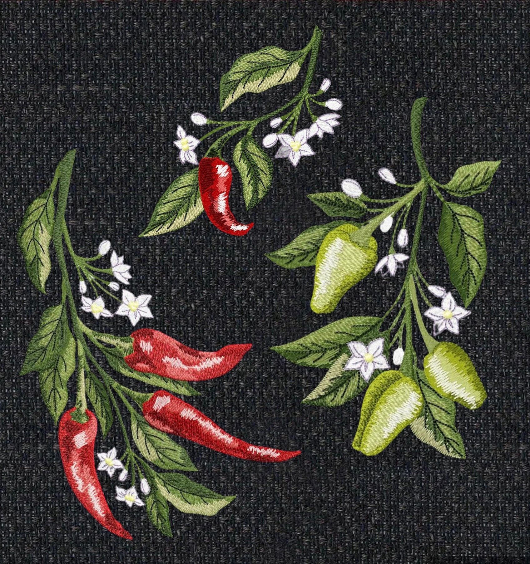 Hot Pepper set of machine embroidery designs in the art surface technique