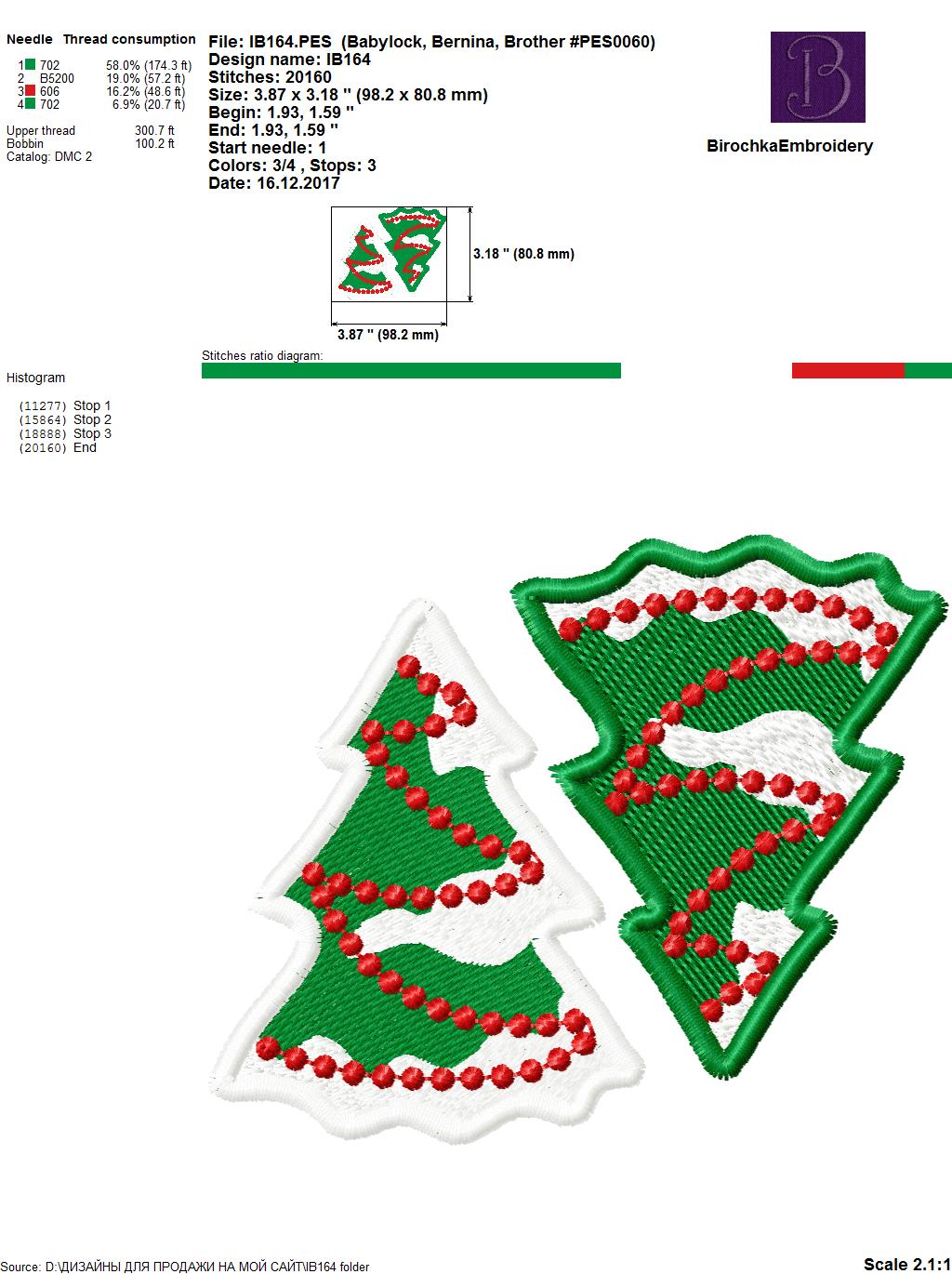 Размер дизайна (2 елки): 81 мм Х 98 мм (3,18Х3,87 дюйма)