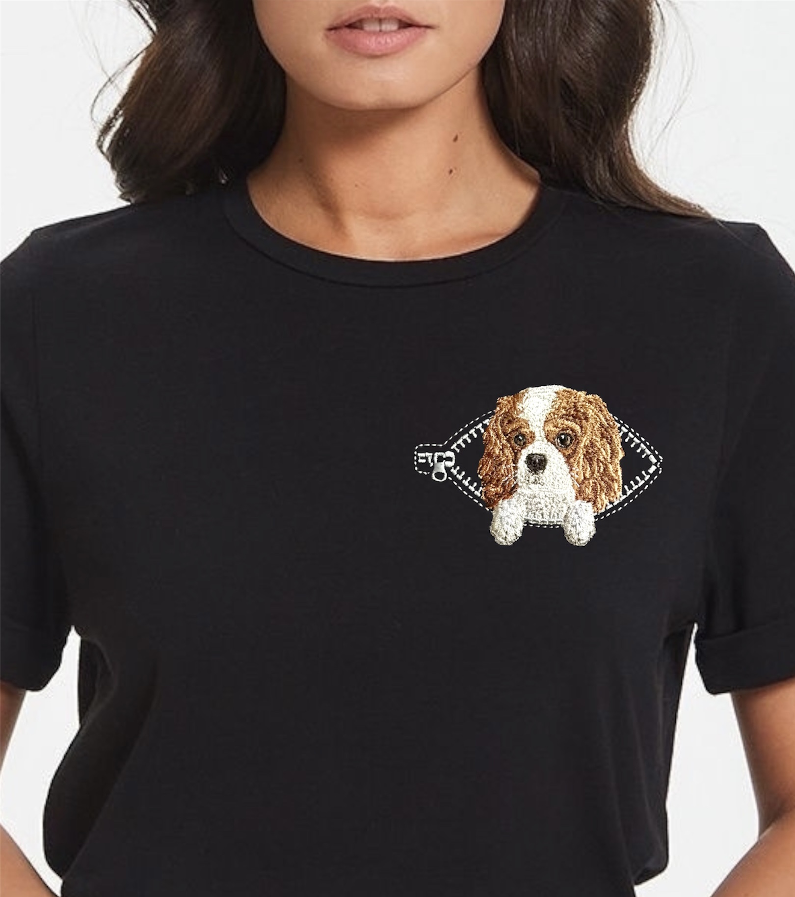 Кавалер Чарльз в кармашке с молнией миниатюрный реалистичный дизайн машинной вышивки