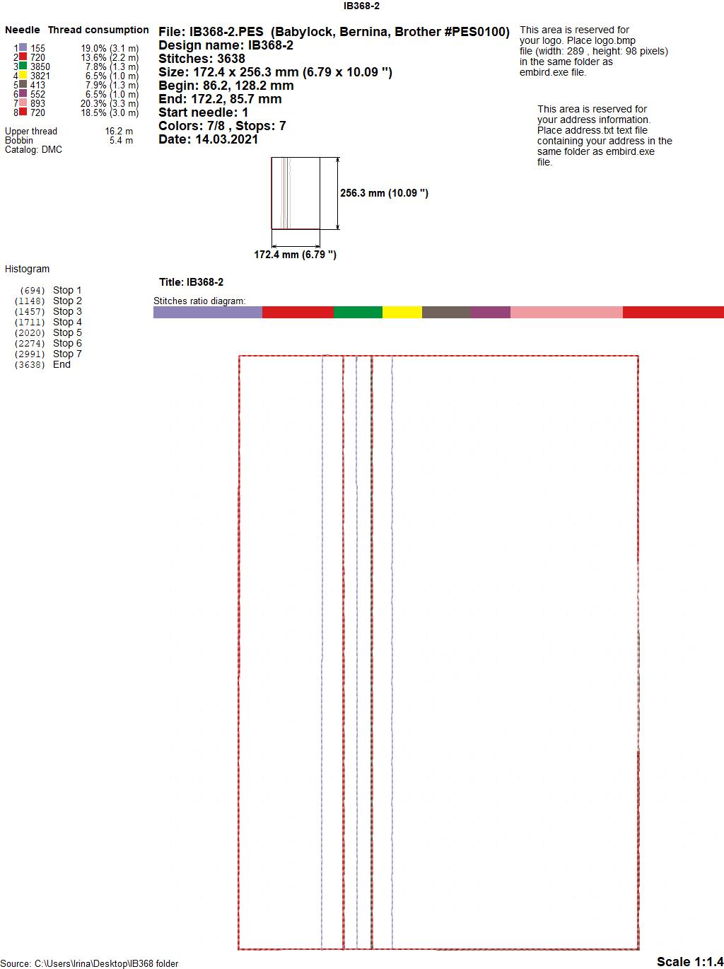 Размер дизайна IB368: 172,3 Х 255,8 мм (6,78 Х 10,07 дюйма )