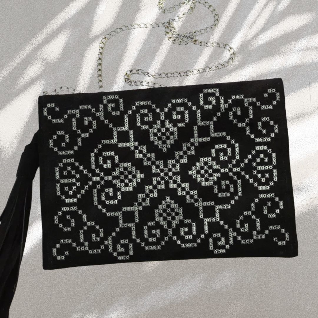 Вот он! Блестящий мозаичный клатч, очень легкий в исполнении! Но, согласитесь, какой же он красивый, как будто из настоящих алмазов выложили замысловатый узор. Просто, быстро, но удивительно элегантно!