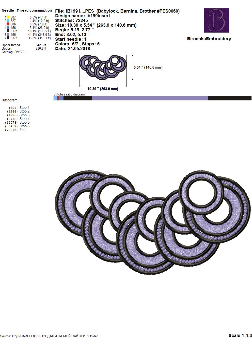 Размер дизайна колье: 263,9 Х 144,5 мм (10,39 Х 5,69 дюйма)