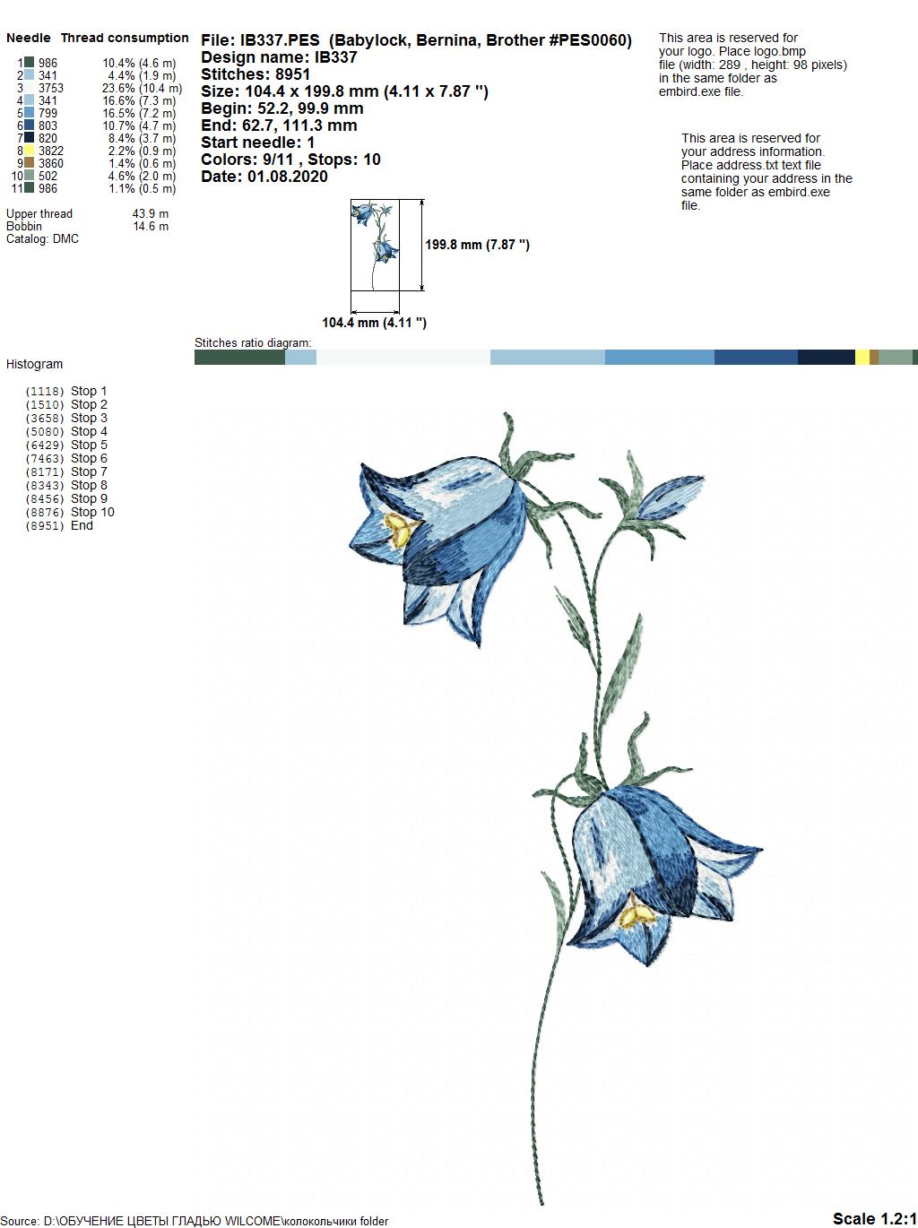 Размер дизайна IB337: 104,4 Х 199,8 мм (4,11 Х 7,87 дюйма)