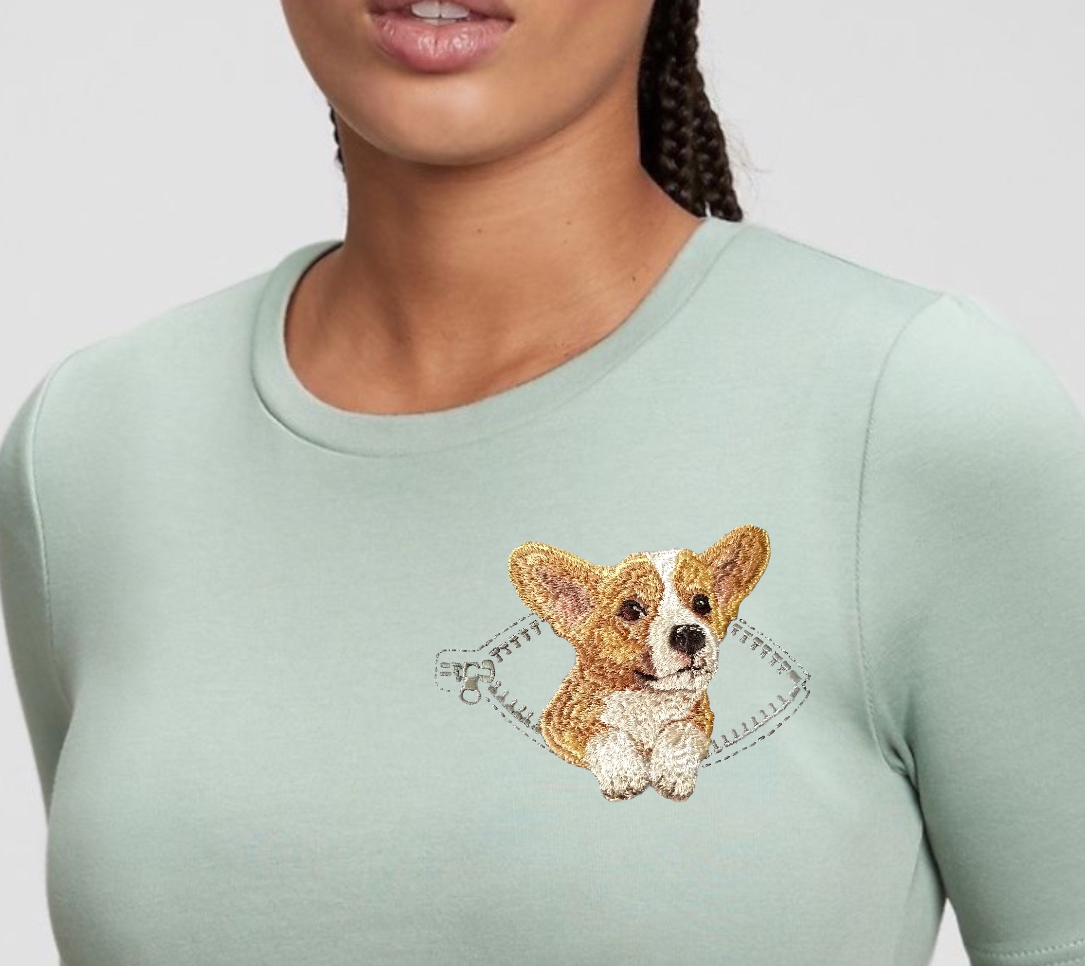 Миниатюрный реалистичный дизайн «Корги в кармашке с молнией»