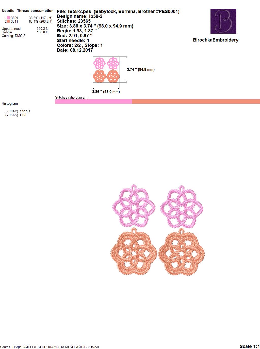 Размер дизайна: 98 X 95 мм (3,86Х3,74 дюйма) — 4 серьги