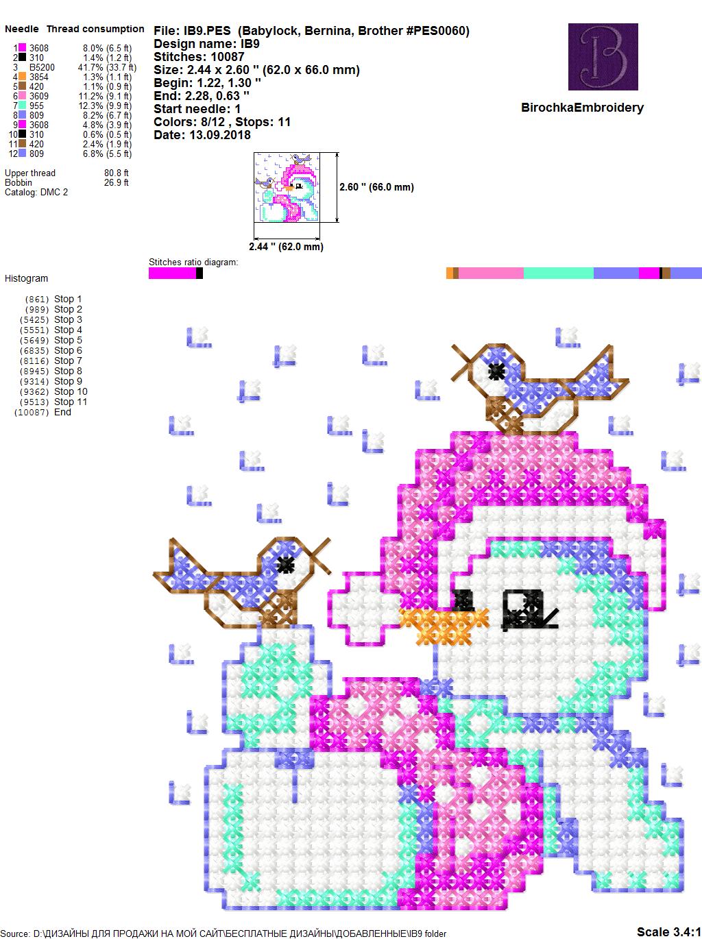 Design is provided in two versions: one as a design to create Christmas decorations, snowman design 2 separately
