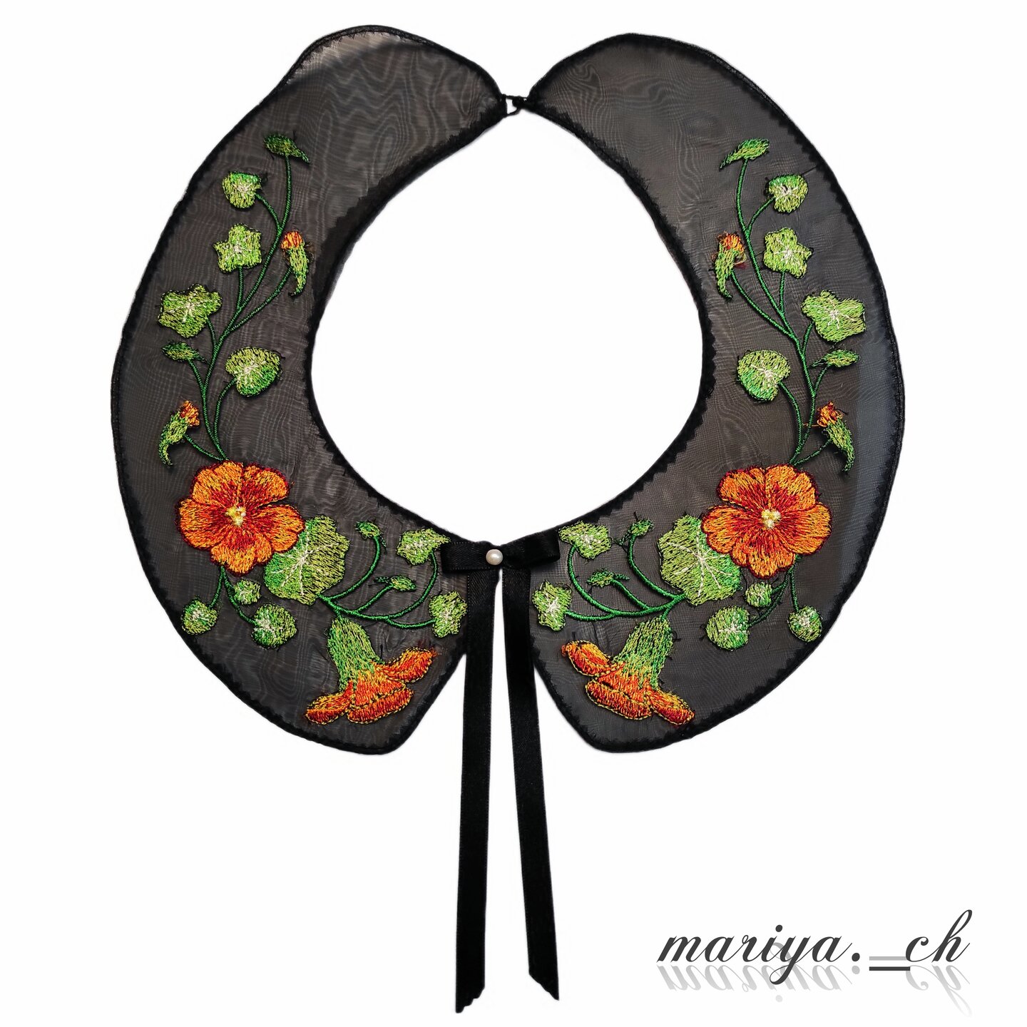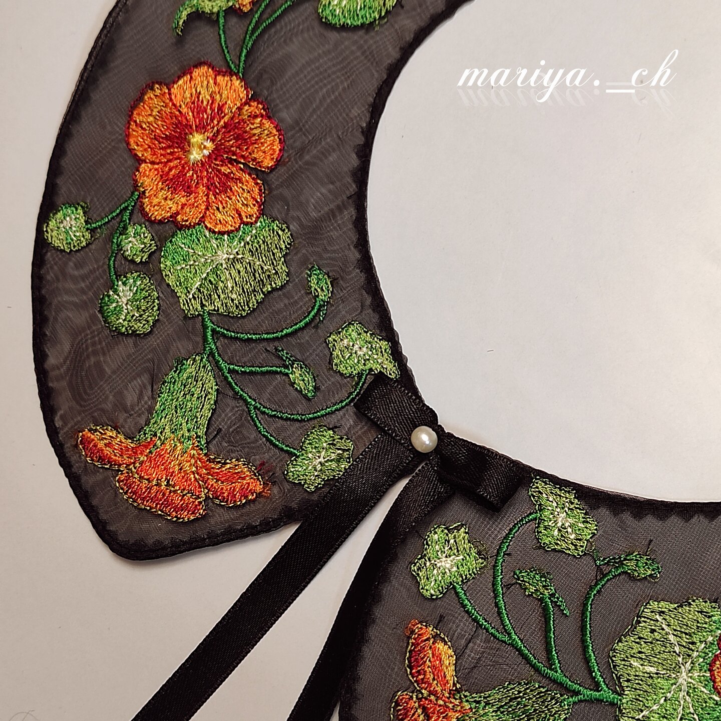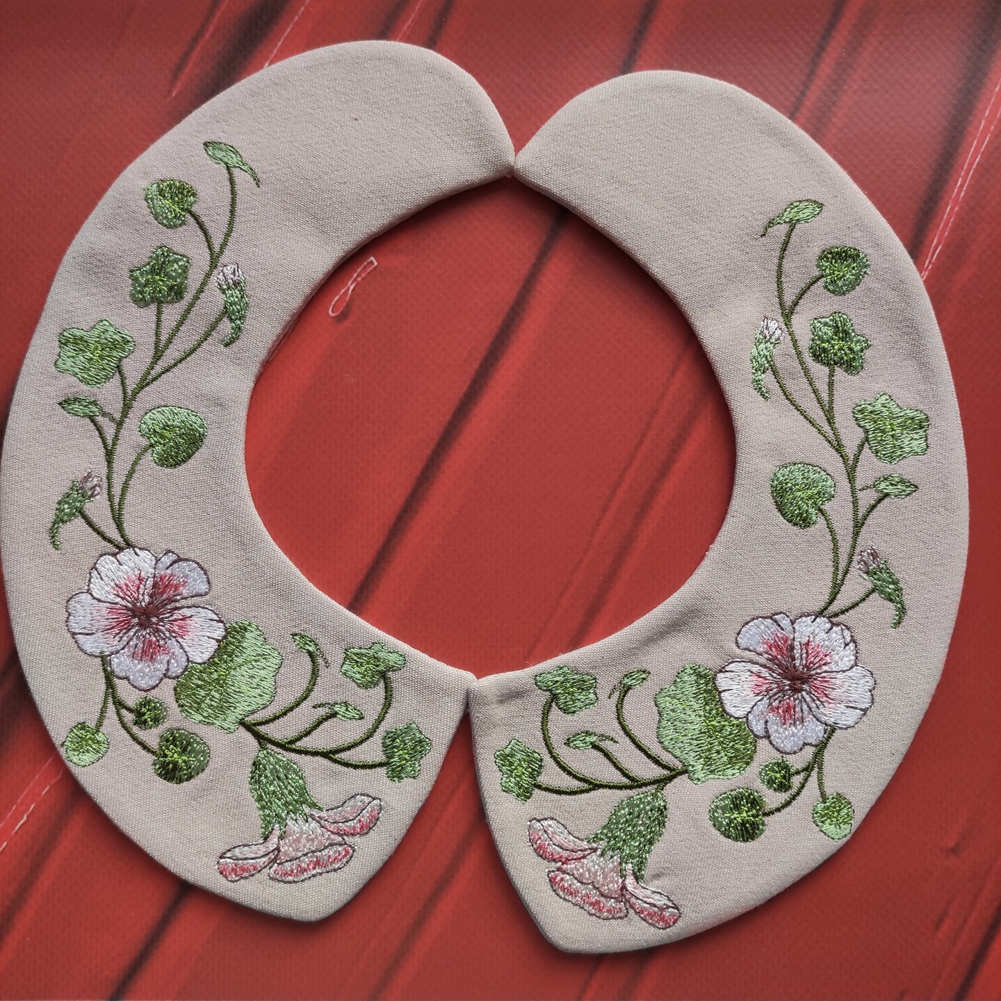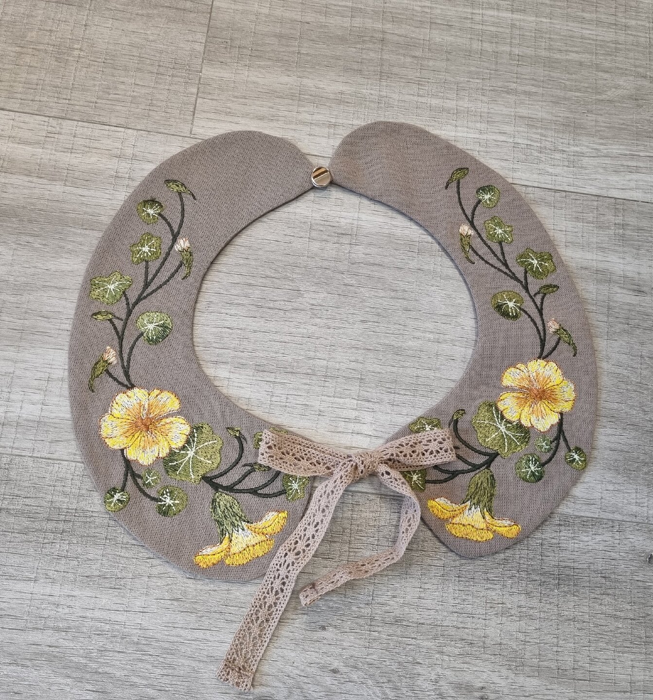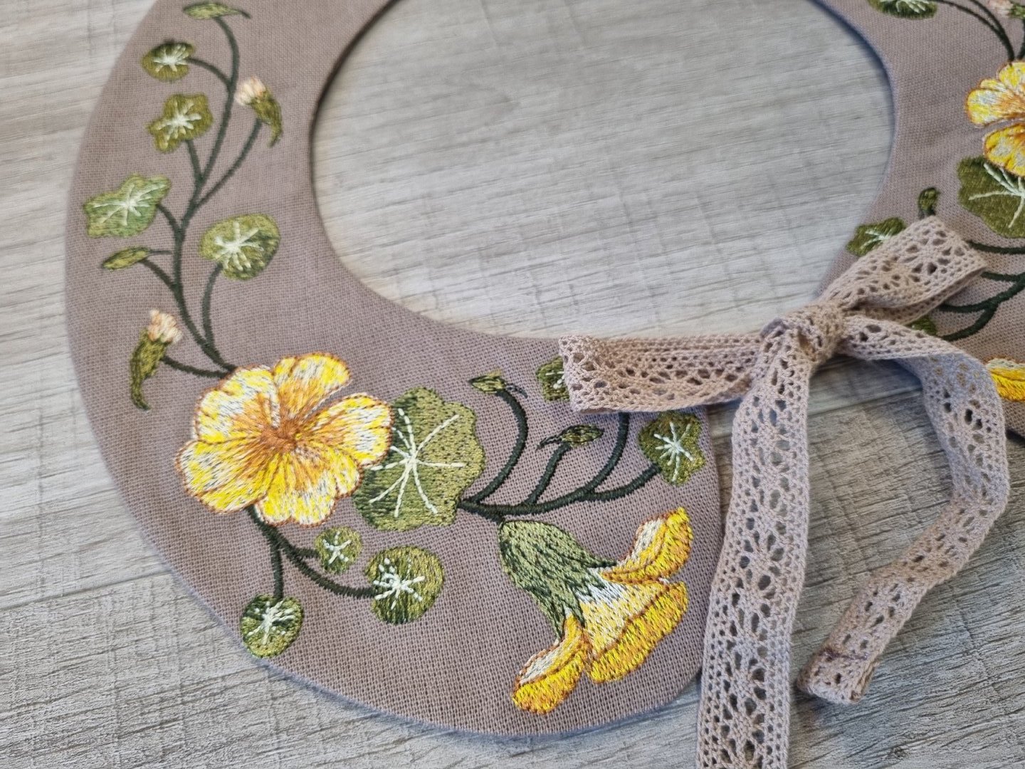 Machine embroidery design collar "Nasturtium" is embroidered and assembled directly in the hoop.