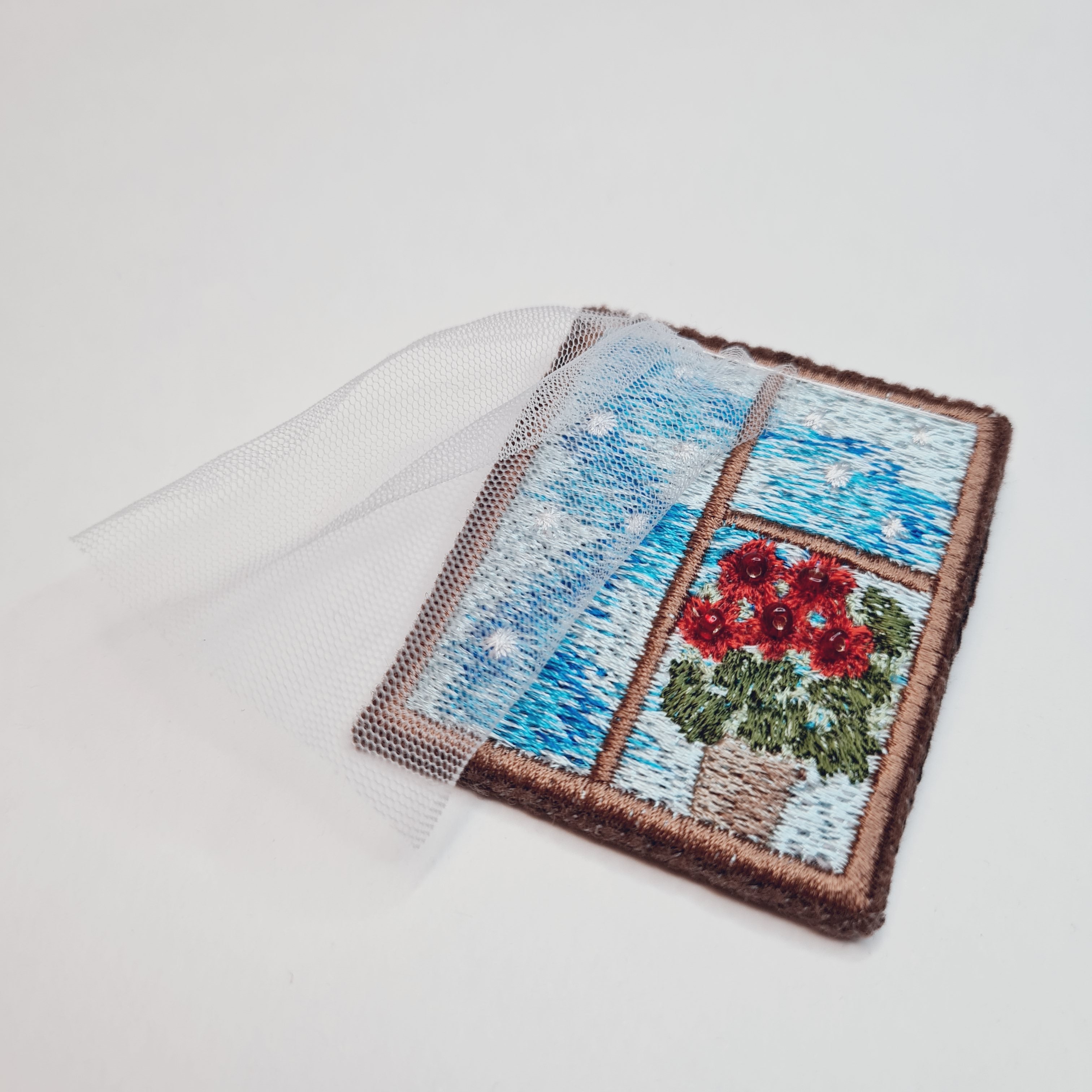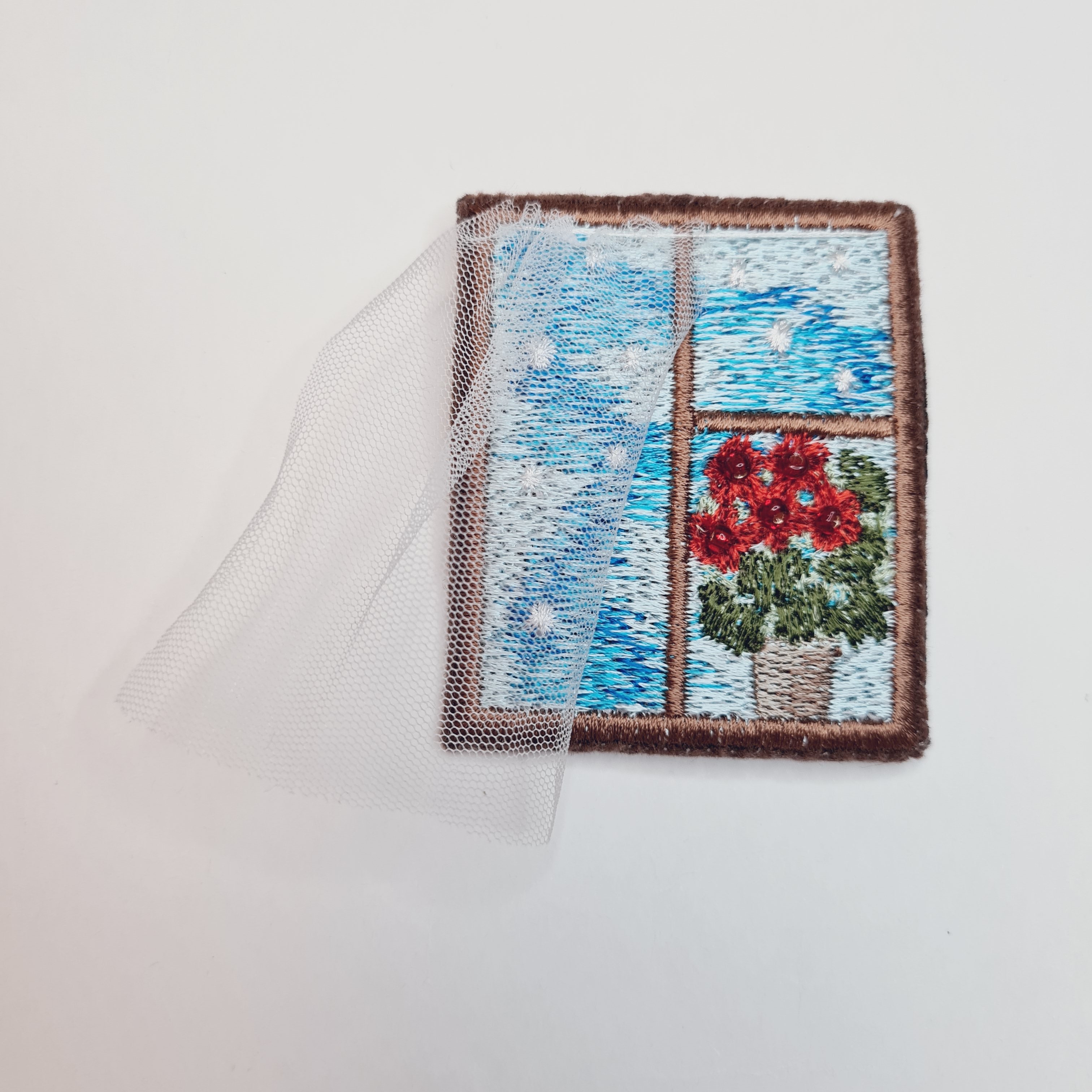 Machine embroidery design for art therapy: Brooch "Window with a flower"