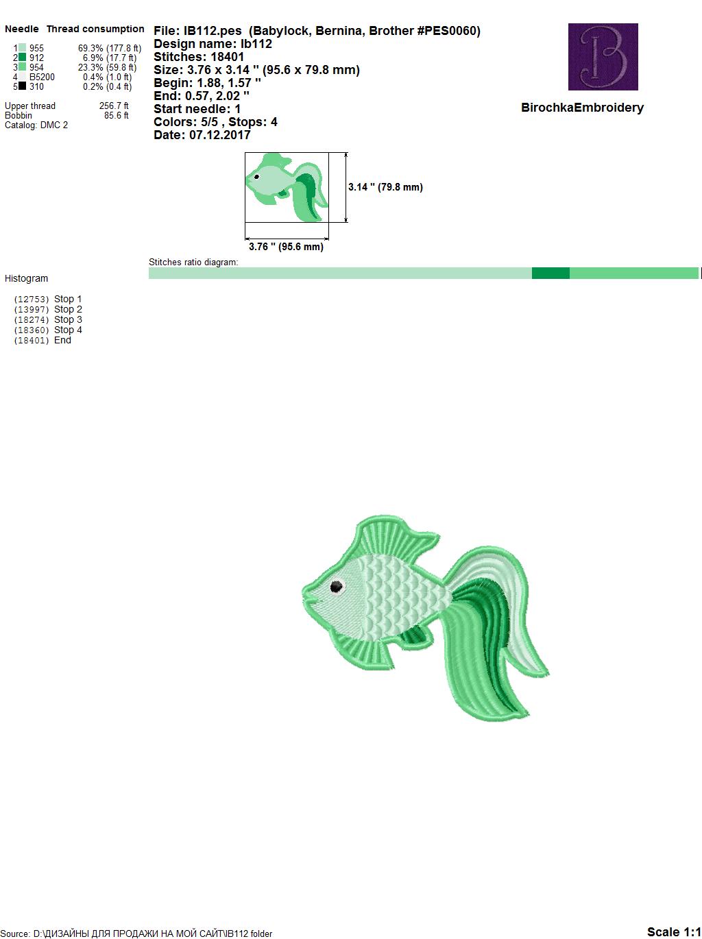 Design size Fish: 96 Х 80 mm (3,76×3,14 inches)