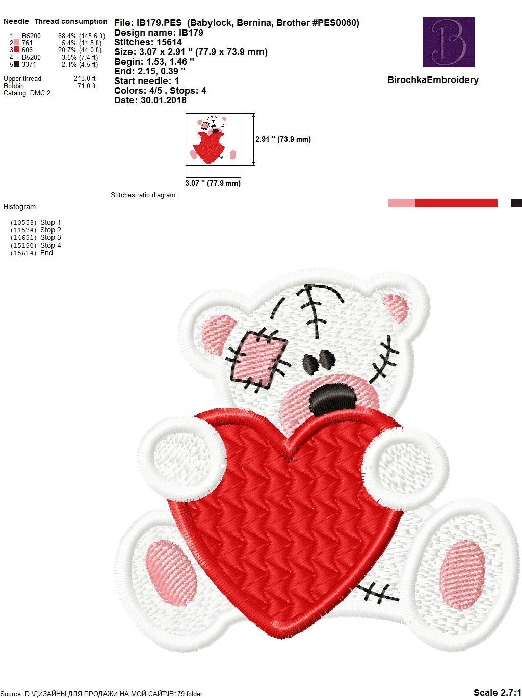 Please be aware that the quality of the final product will be greatly affected by factors other than the design itself. For best results, make sure to follow the instructions exactly, use the correct machinery (type, size, etc.,), be aware of how embroidery looks on different fabrics and use the appropriate stabilizer for your project.