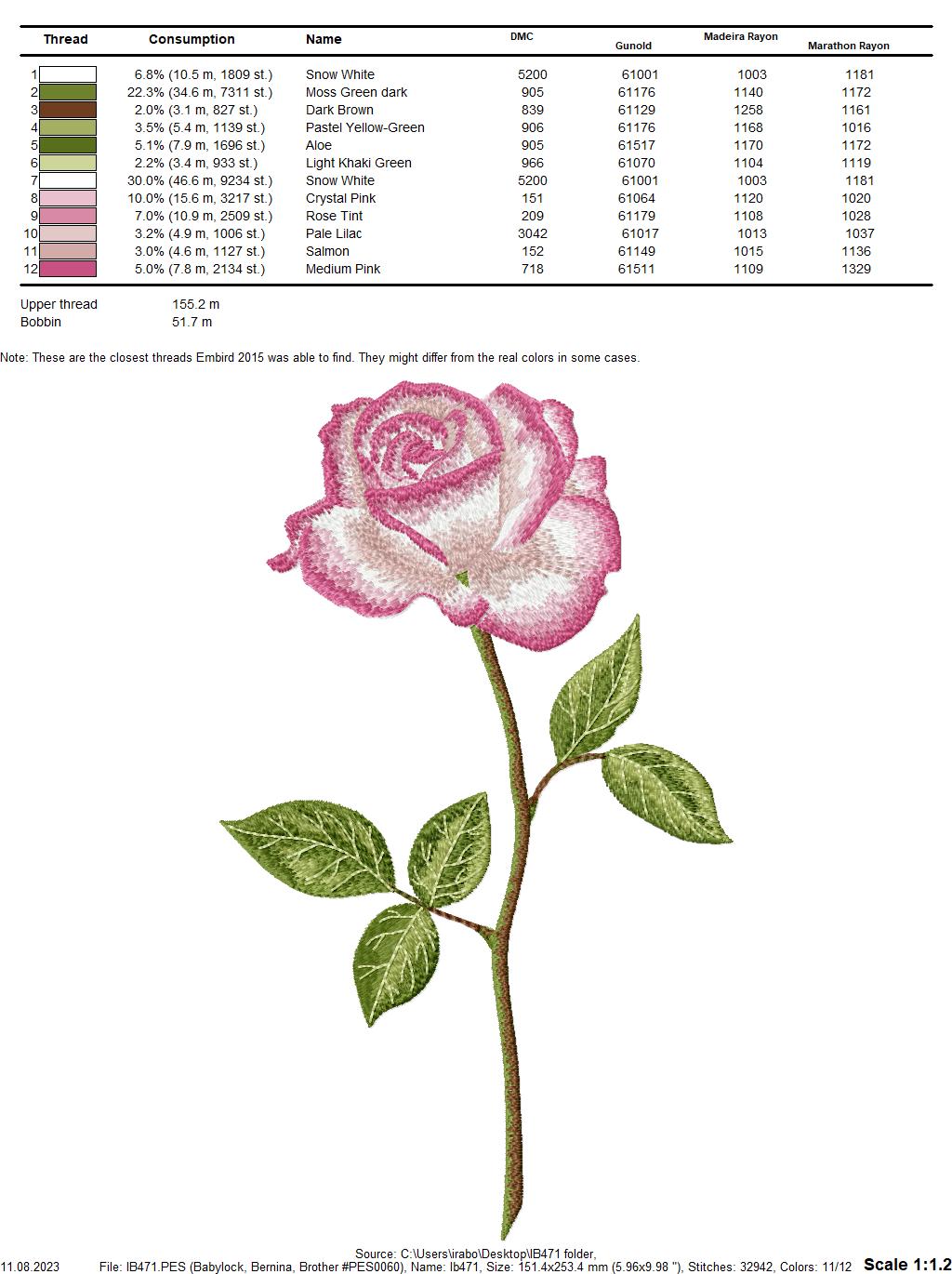Machine embroidery design in art stitch technique “Beautiful Rose”