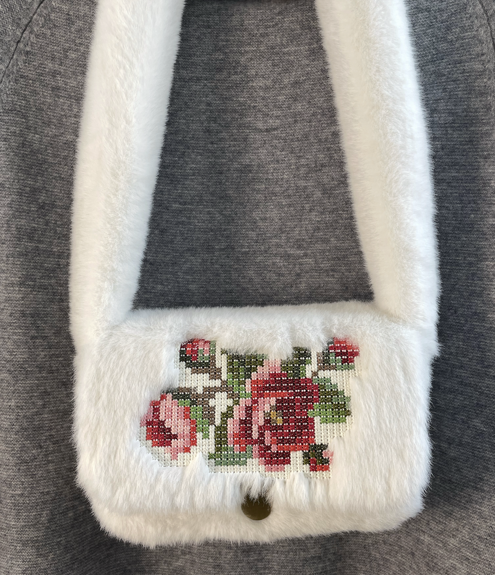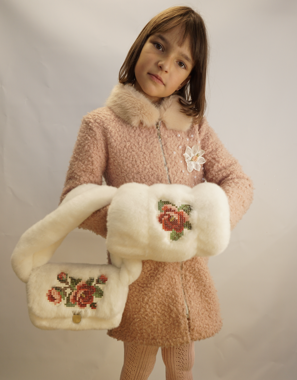 - with crosses around the pattern, which are created specifically for embroidery on fur fabrics, which are embroidered in the tone of the fur and help to do without cutting the fur around the pattern so that the pile does not cover the pattern