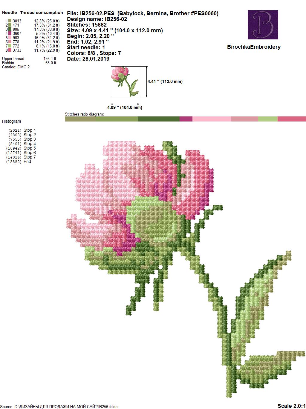 To get a good result, you must use a dense stabilizer and fix the fabric in the embroidery frame well. It is desirable to embroider this design at a slow speed.