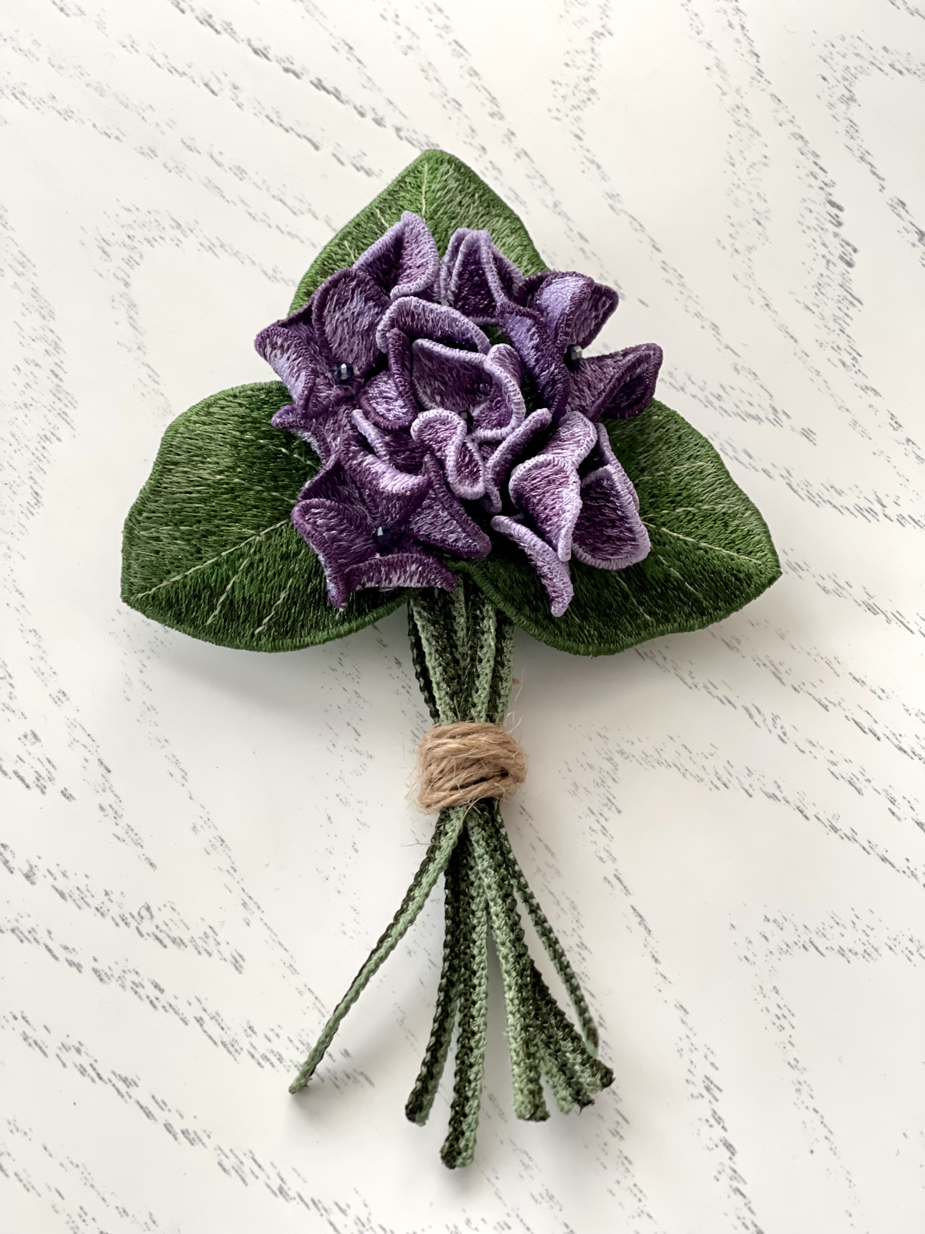 Machine embroidery design three-dimensional flower “Bouquet of violets”