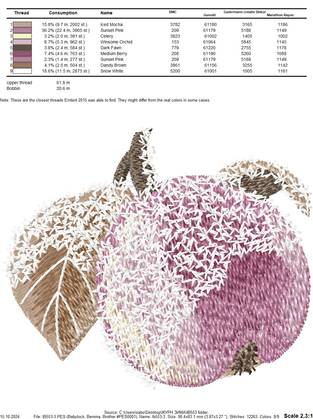 A set of frosty winter apples covered with snow for embroidery and decoration of clothes, home textiles or accessories.