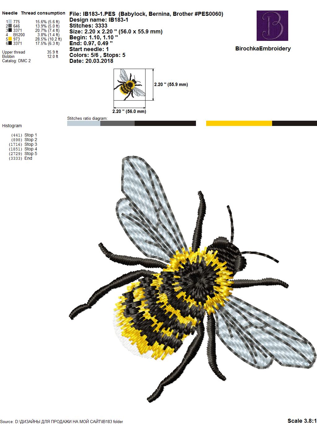 Design size Bee: 56 Х 55,9mm (2,2X2,2 inches)