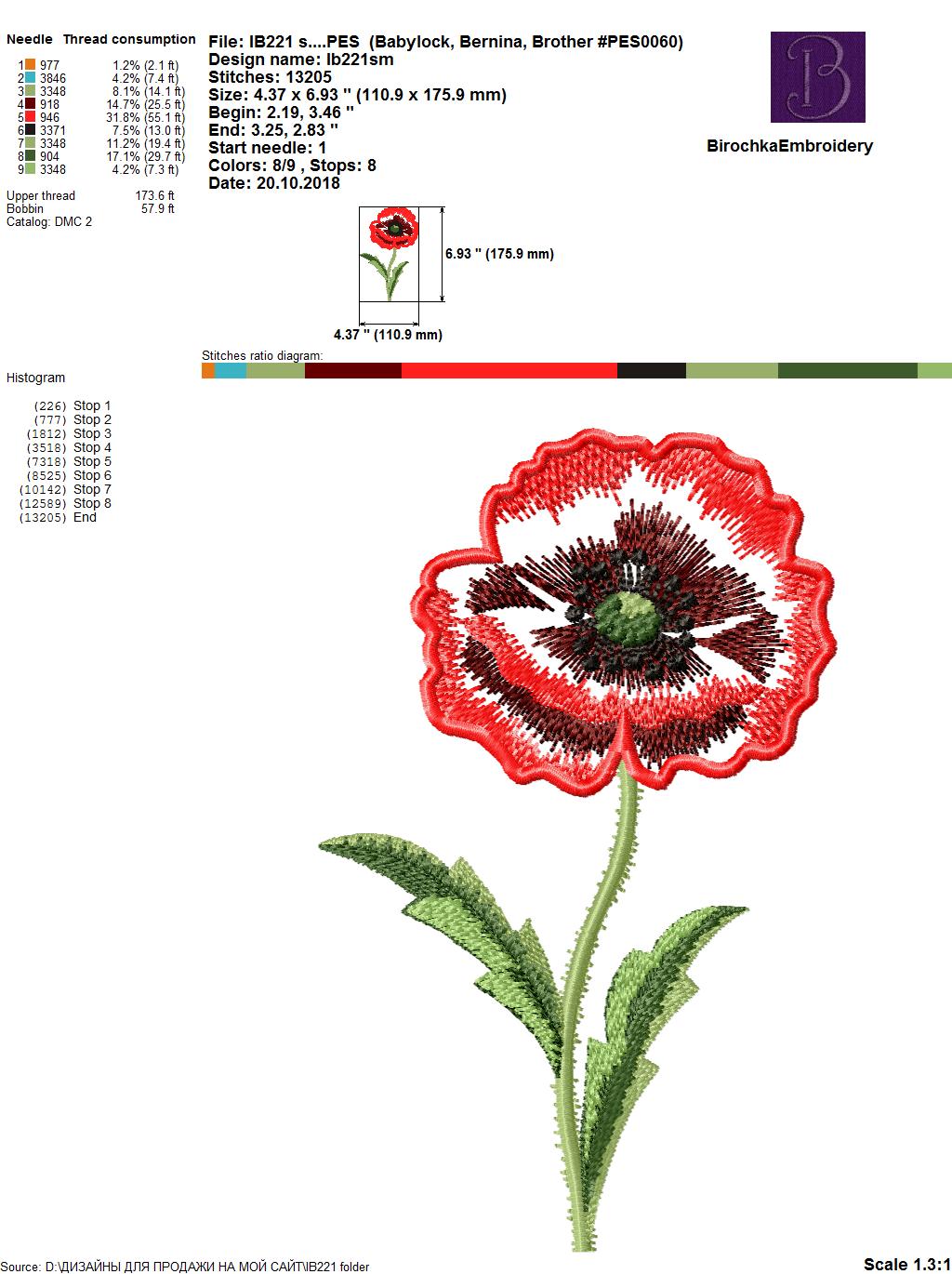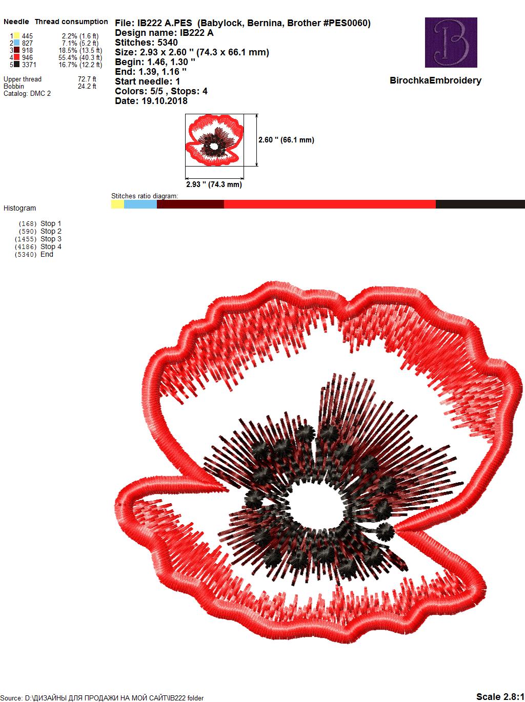 Размер дизайна для пяльцев: 180 х 300 мм (7 х 11,8 дюйма), 200 х 260 мм (7,8 х 10 дюймов) и один отдельный цветок для пяльцев 130 х 180 мм (5 х 7 дюймов)
