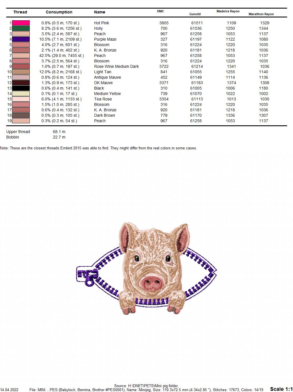 Design size Mini pig: 110,3 Х 72,5 mm (4,34 Х 2,85 inches )