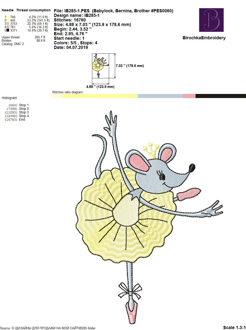 Размер дизайна Мышка 1: 123,9 Х 178,6 мм (4,88 Х 7,03 дюйма)