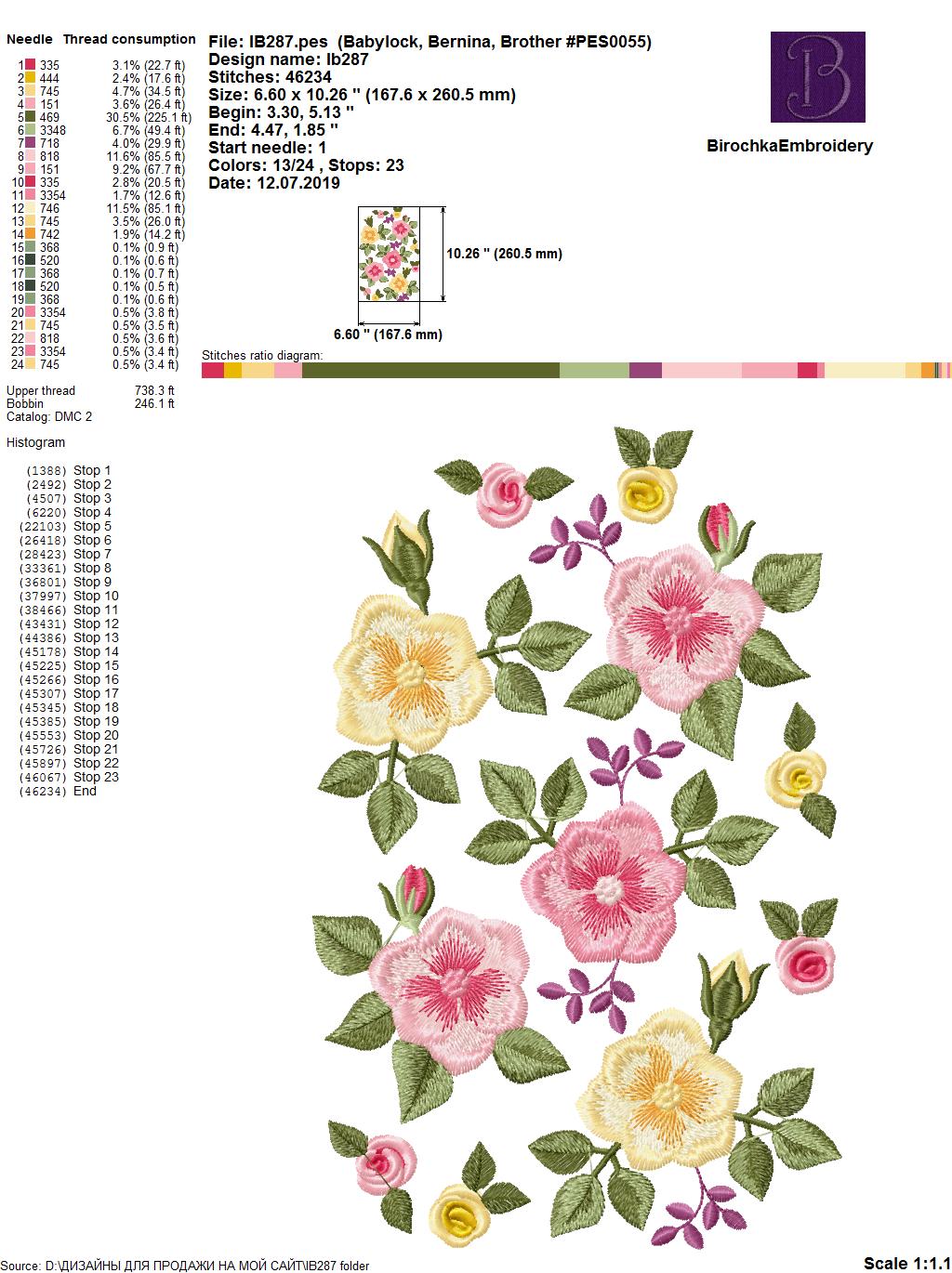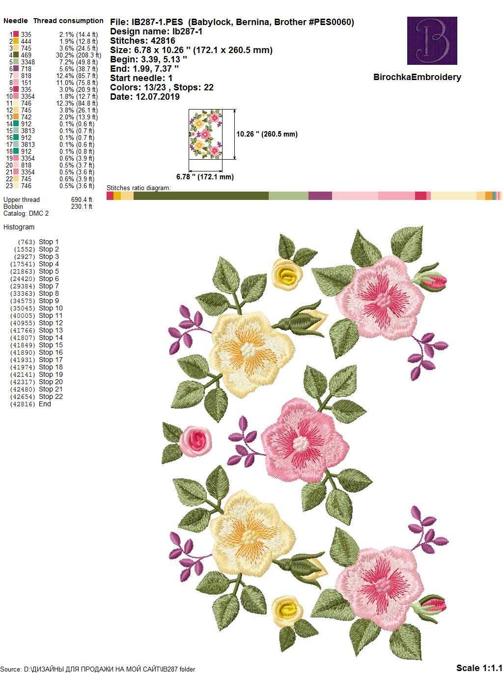 Размер дизайна IB287: 167,6 Х 260,5 мм