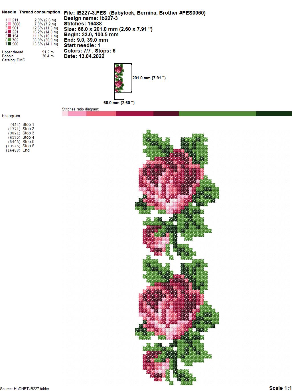 Набор дизайнов машинной вышивки "Розы" в технике вышивки крестом
